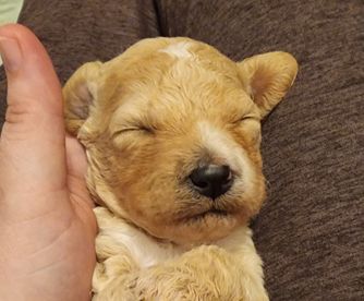 Ruby is a female Labradoodle. Carefully selected as a great representative of her breed, Emily decided to make her part of their program. Emily has passed Good Dog’s screening process, which involved a review of their breeding practices, environment, and the mental and physical health of their dogs.