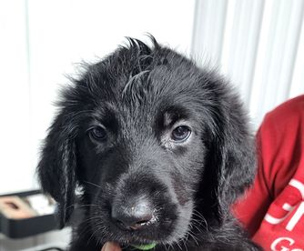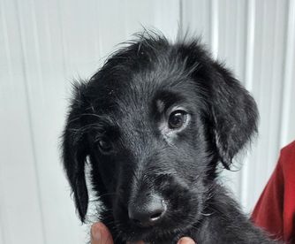Labrador Retriever puppies are black. Labradoodle puppies include apricot, cream, chocolate, and black. Colors will vary depending on the parent dogs.