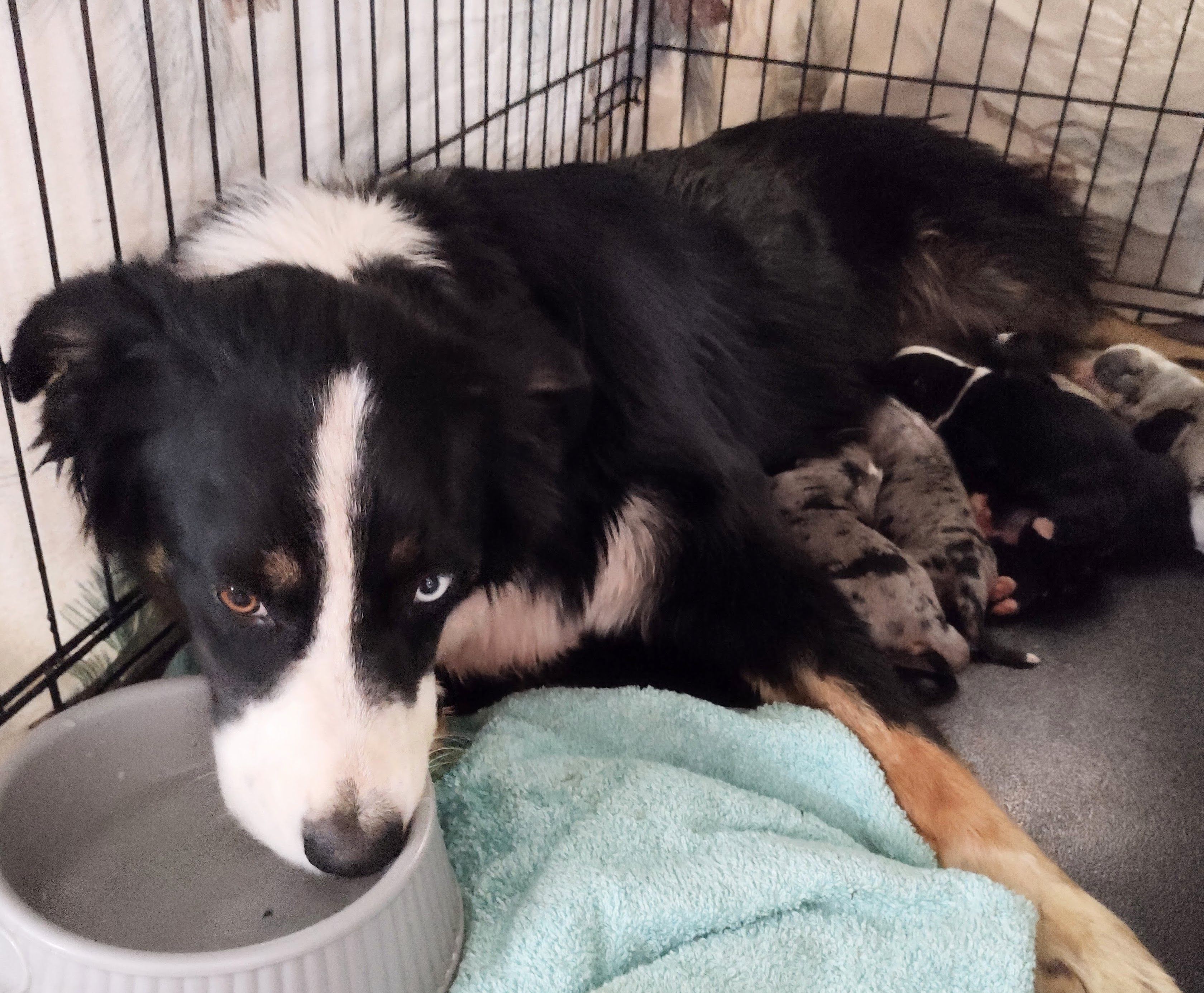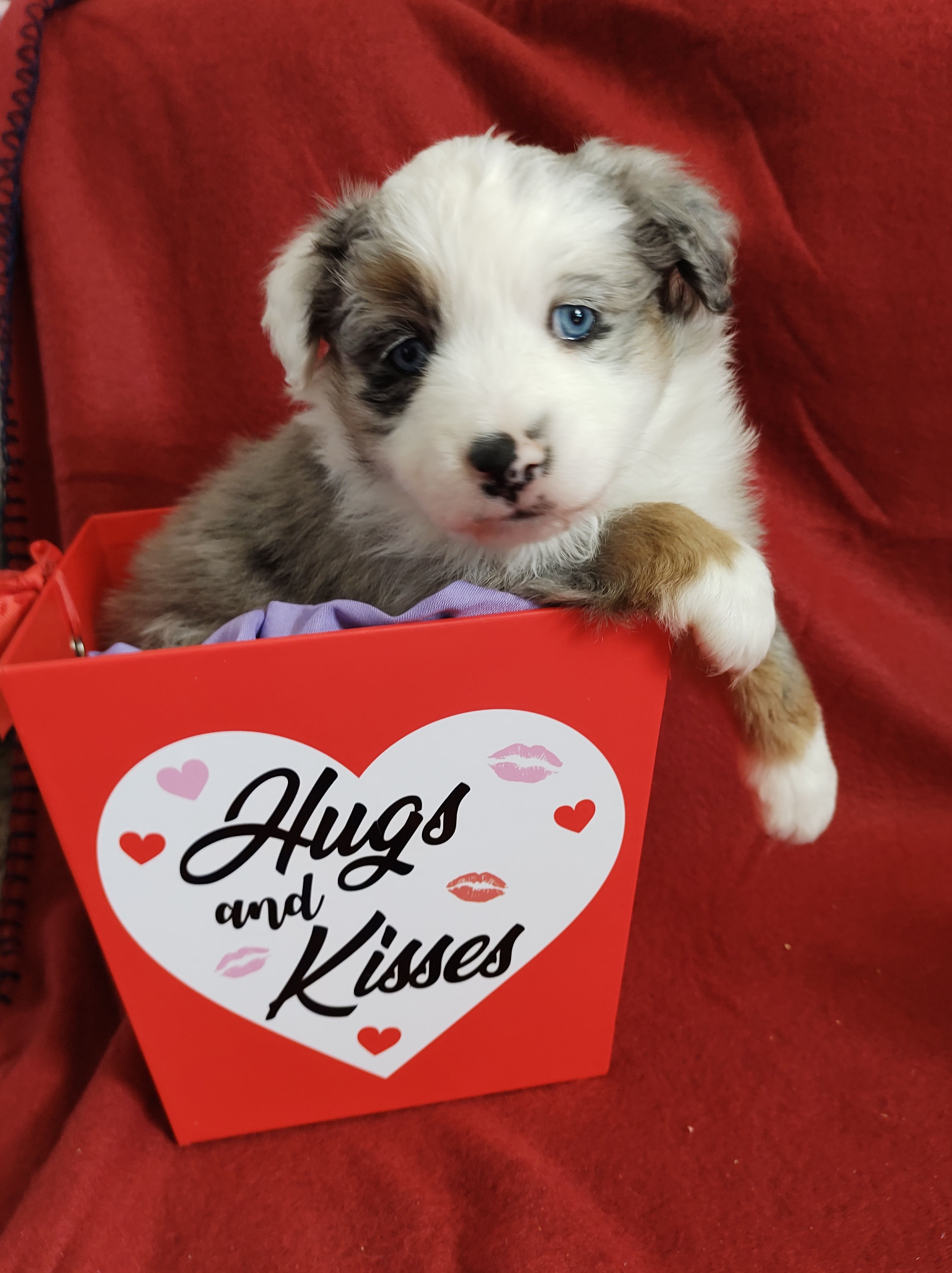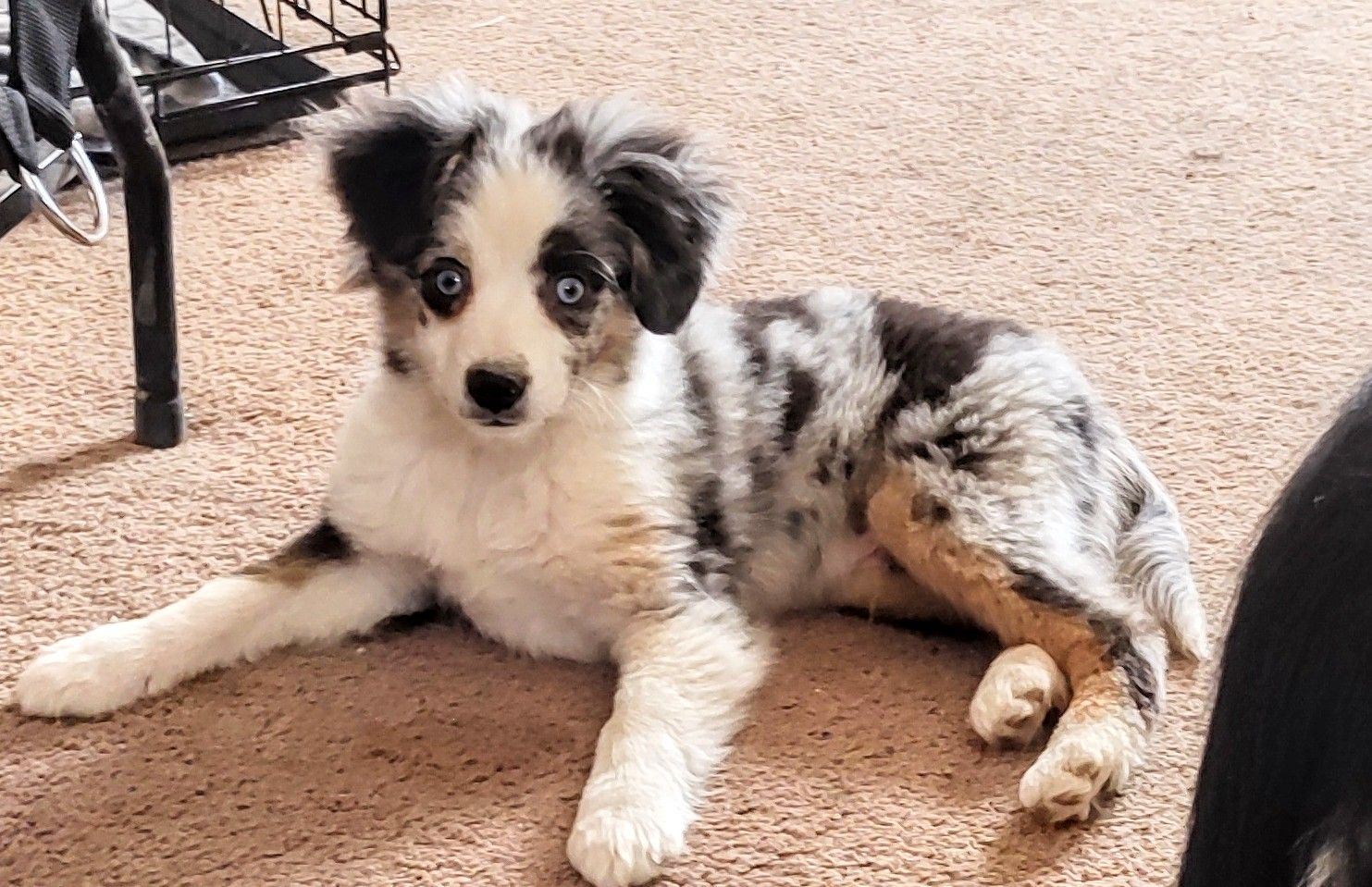 Our puppies are blue merle. Colors will vary depending on the parent dogs.