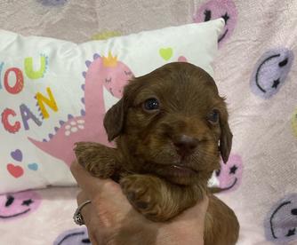 Our puppies include cream, red, black and tan, chocolate and cream, and black and cream. Colors will vary depending on the parent dogs.