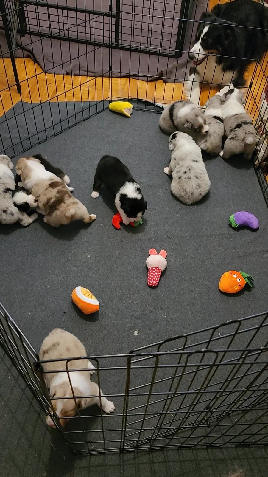Mimi’s Aussie is really well-behaved and smart! When we open the gate to let him out to play, he sits down and waits patiently. We set up a pee pad indoors, and by the second day he was already using it correctly most of the time. Mimi has also been so kind and quick to answer my questions. I really appreciate her for raising such a sweet puppy!