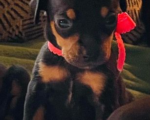 I'm Tabatha F., the breeder behind Min Pin Puppy Time located in Ohio. We’re so excited to be able to help families experience the longtime loyalty of welcoming a new puppy into their lives! Our dogs stole our hearts right from the start and we found ourselves wanting to get more involved. Breeding was a natural next step and we haven’t looked back since!