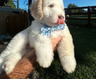 I'm Mindy C., the breeder behind Mindys Doodles located in Holt, MO. I am so proud of the healthy, affectionate, and behaviorally well-rounded puppies I raise for other families to love! My puppies are raised inside a loving home. They are held daily and pre-spoiled. We start on potty training so that your pup is ready to thrive in your home. My whole family is involved in raising these pups! We doggie door train for 3 weeks most puppies go home very close to fully trained if you’re able to add a doggie door they’re a game changer!
