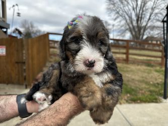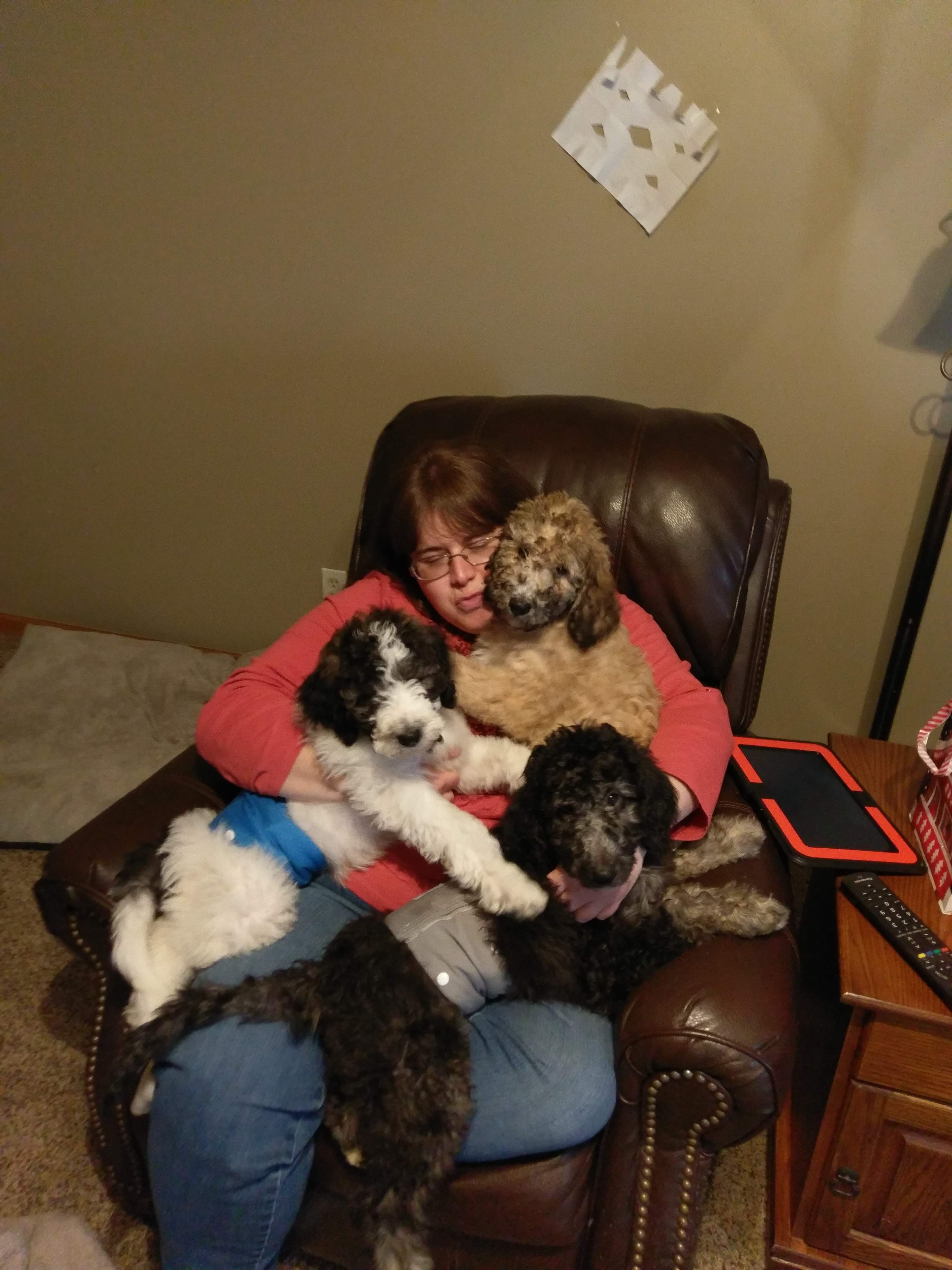 We feel very fortunate to have found Mindys Doodles on gooddog.com. Our Bella is pure joy. She is already attached to our 4 year old Bernedoodle Bernie.