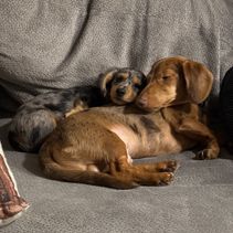 I'm Monica H., the breeder behind Ming's Mongols located in Aiken, SC. Akc registered miniature dachshunds. Pee pad training started as well as socializion skills. 2 sets of vaccinations, dewormed as age appropriate, microchiped, cleared for genetic disorders through Embark, parents have had full physicals and routine care. Parents on site. In home kennel.