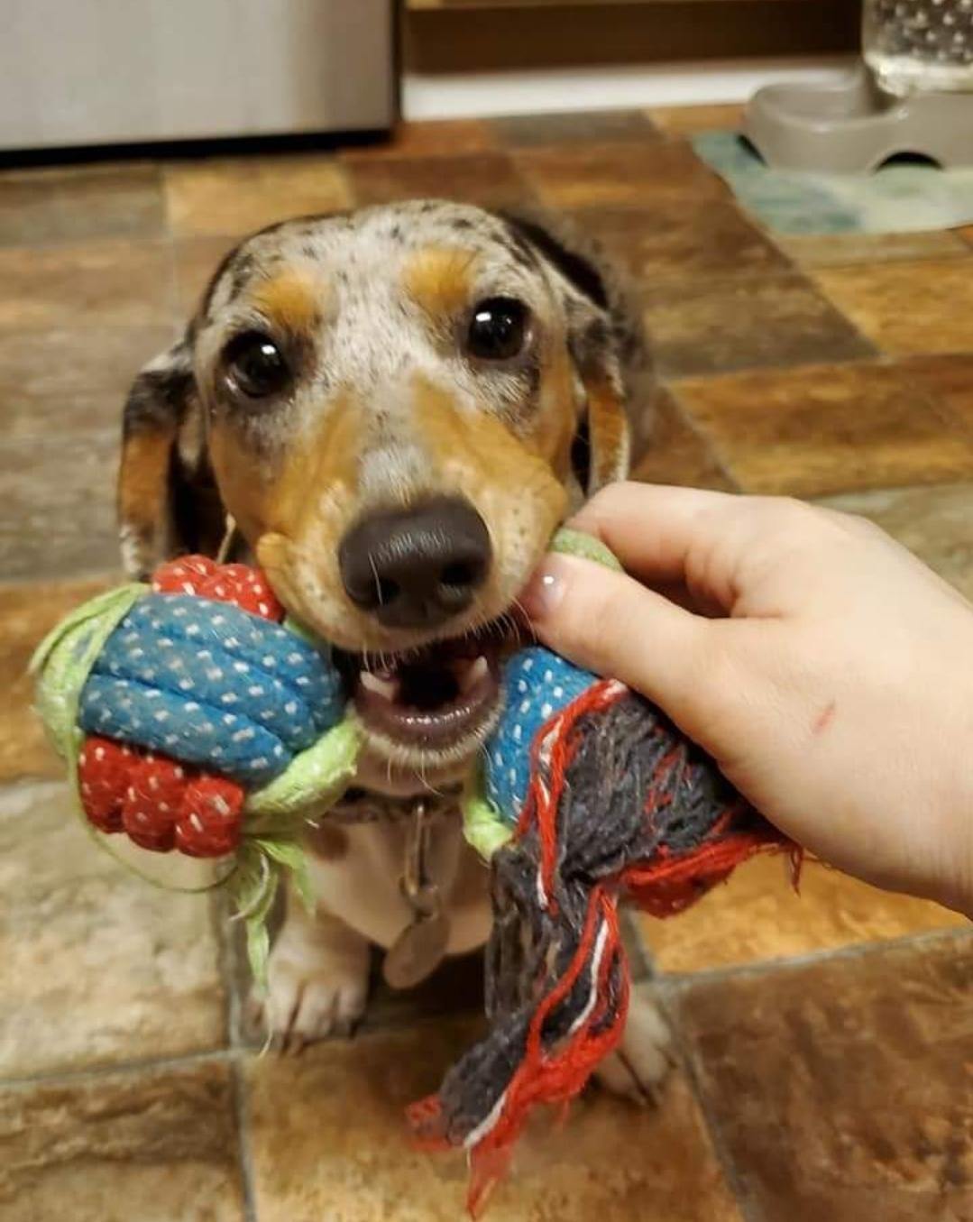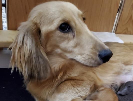 Honey is a female Dachshund. Carefully selected as a great representative of her breed, Monica decided to make her part of their program. Monica has passed Good Dog’s screening process, which involved a review of their breeding practices, environment, and the mental and physical health of their dogs.