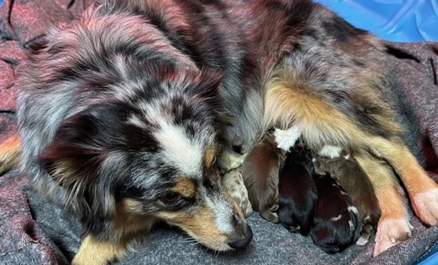 We bought our first Mini American Shepherd four years ago and fell in love with her, Lucky, so we thought it would be a good idea to breed her and bless others with dogs like her.