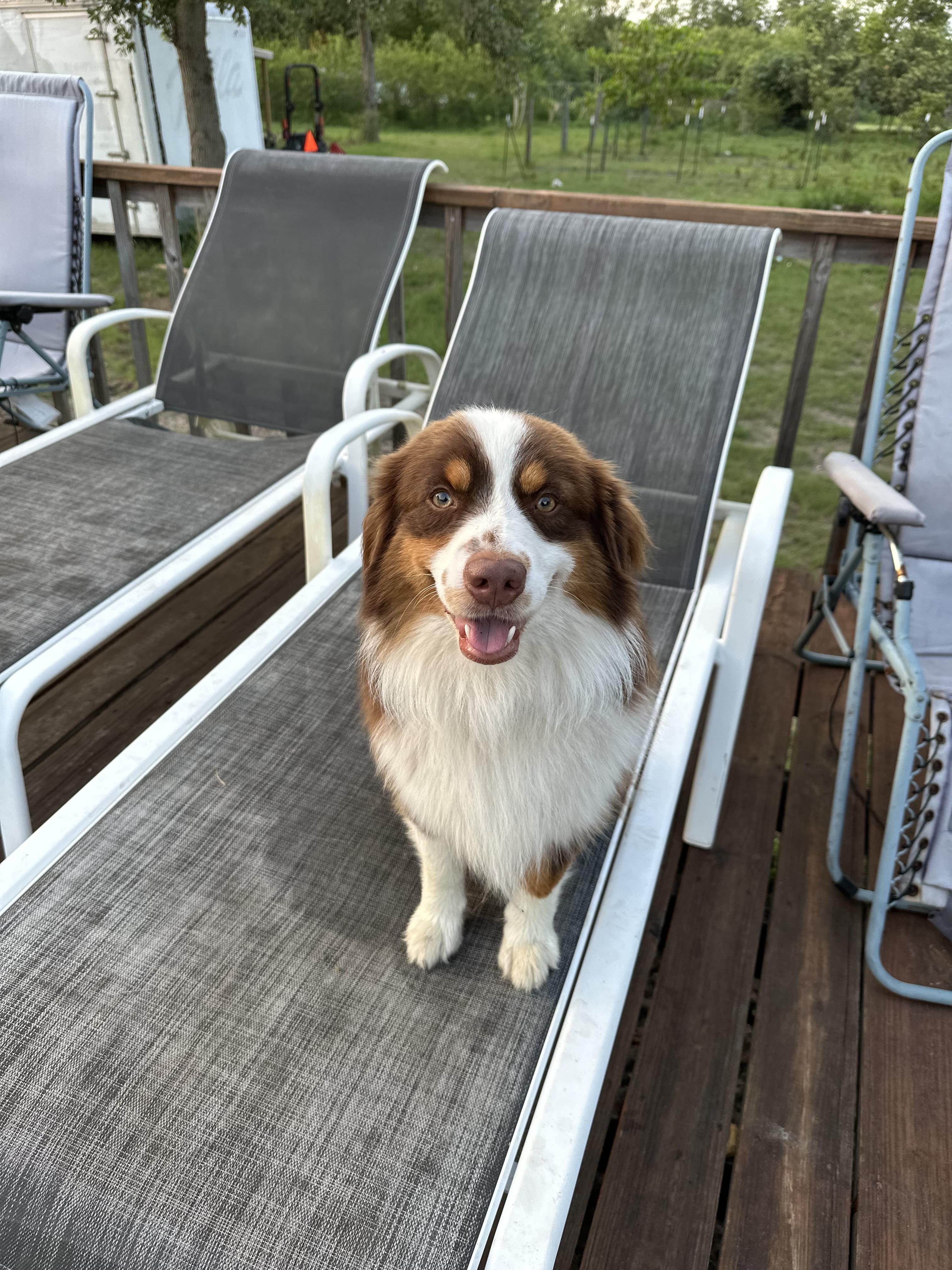 Chewy is a female Miniature American Shepherd. Carefully selected as a great representative of her breed, Doug decided to make her part of their program. Doug has passed Good Dog’s screening process, which involved a review of their breeding practices, environment, and the mental and physical health of their dogs.