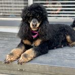 Martha is an amazing poodle. She knows no stranger, loves the ball, loves to be loyal, and is a great guard dog. She has beautiful high intensity, and holds her phantom coloring.