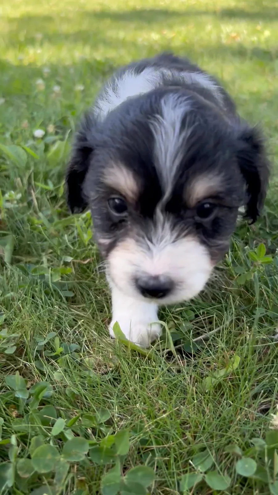 Our puppies include blue merle, red merle, black and white, and black tri-color. Colors will vary depending on the parent dogs.