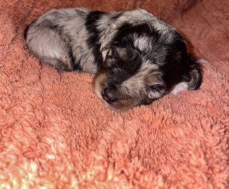 I'm Cody T., the breeder behind Mini AussieDoodles on Meadow Lane located in Maysville, MO. Hi! Our names are Kayla and Cody. We are breeders out of Northwest Missouri of F1 Miniature AussieDoodles. We have been breeders for almost 5 years now. Our goal is to place our sweet baby pups in a sweet, loving, and caring forever home. Miniature AussieDoodles are an amazing breed. They are very intelligent and family friendly dogs who are also considered minimal/non shed and hypoallergenic. Our pups are usually around 15-25 lbs full grown. Our dames and sire are all registered and health checked. We also have a health contract/guarantee available for our customers. When our puppies leave us they are up to date on vaccinations, up to date on dewormer, handled by people every day (including children), and have been around other household animals. We hope you will consider our sweet pups for your newest addition to your family.