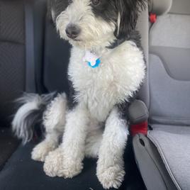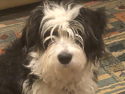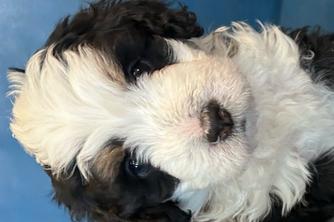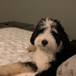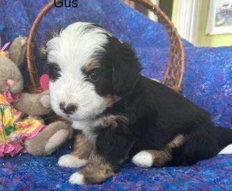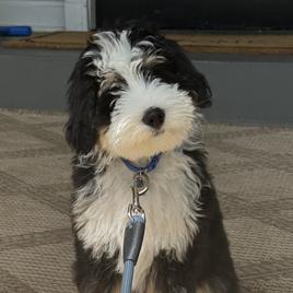 Ziva is a tricolored mini Bernie doodle who is extra small. She is a great natured sassy little snuggler who is never very far away from her owner. She is poodle smart and Bernese devoted. She i’m is a great companion and a wonderful mother.