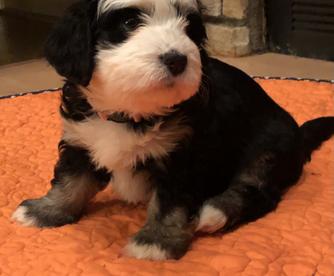 Zach is a gentle natured fun little goofball. He is very mild mannered and loves everyone. He loves to be near his owners and gets along well with the other dogs. He like most male dogs loves a lot of attention and loves to be near you. He’s smart like a poodle and loyal like a Bernese mountain dog.