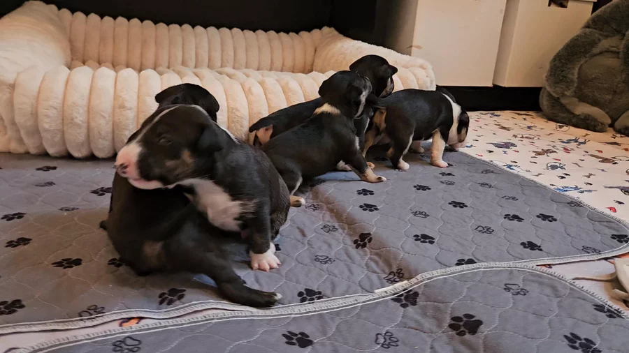 Lindsey is the most amazing breeder. You cannot find one better. She is very selective about who gets the privilege of adopting one of her puppies. I appreciate that. They are special. She is so helpful, responsive, and cares about her puppies even after they go to their forever homes. My Fredo has the best temperament of any dog I have ever owned. He is gentle and sweet, without an aggressive bone in his body. This is thanks to Lindsey’s diligence in her choice of sire for Panda, her beautiful EBT. She did genetic testing for traits, and microchipped my puppy and had his first vaccines done before I even picked him up. Her puppies are not a means to make money for her. She genuinely loves them and is dedicated to the breed. You will be so lucky if she picks you to bring home one of these gorgeous dogs.