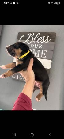 Our puppies include black and tan, black brindle and white, and black and brindle. Colors will vary depending on the parent dogs.