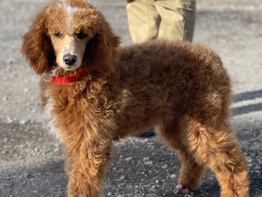 Bo is an AKC registered mini poodle. He weighs 25 lbs and low energy. He is on the shy side but loves being around people once he gets comfortable with you.