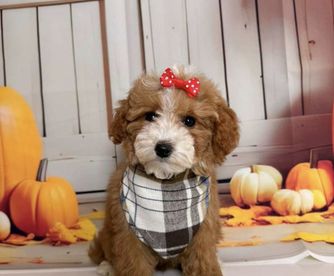 Maltipoo is a female Maltipoo. Carefully selected as a great representative of her breed, Mini Goldendoodles of Cape Cod decided to make her part of their program. Mini Goldendoodles of Cape Cod has passed Good Dog’s screening process, which involved a review of their breeding practices, environment, and the mental and physical health of their dogs.