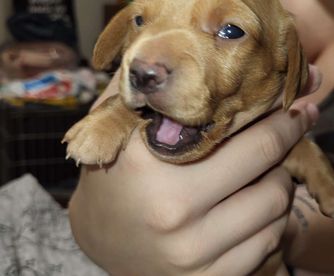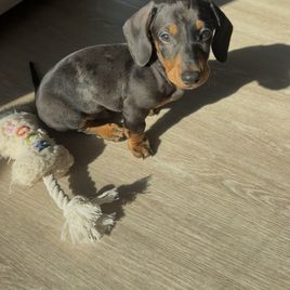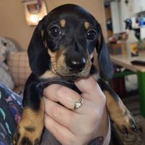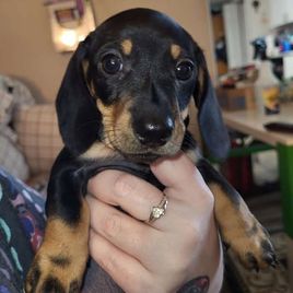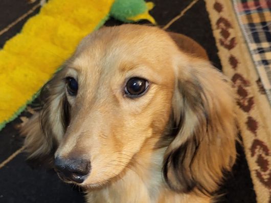 Angela was great! She kept us updated with photos and vet visits. I have no complaints. Jumbo is a naughty and loving little Dachshund. I definitely recommend her if you are looking for one of these little terrors, excuse me, I mean dogs😀