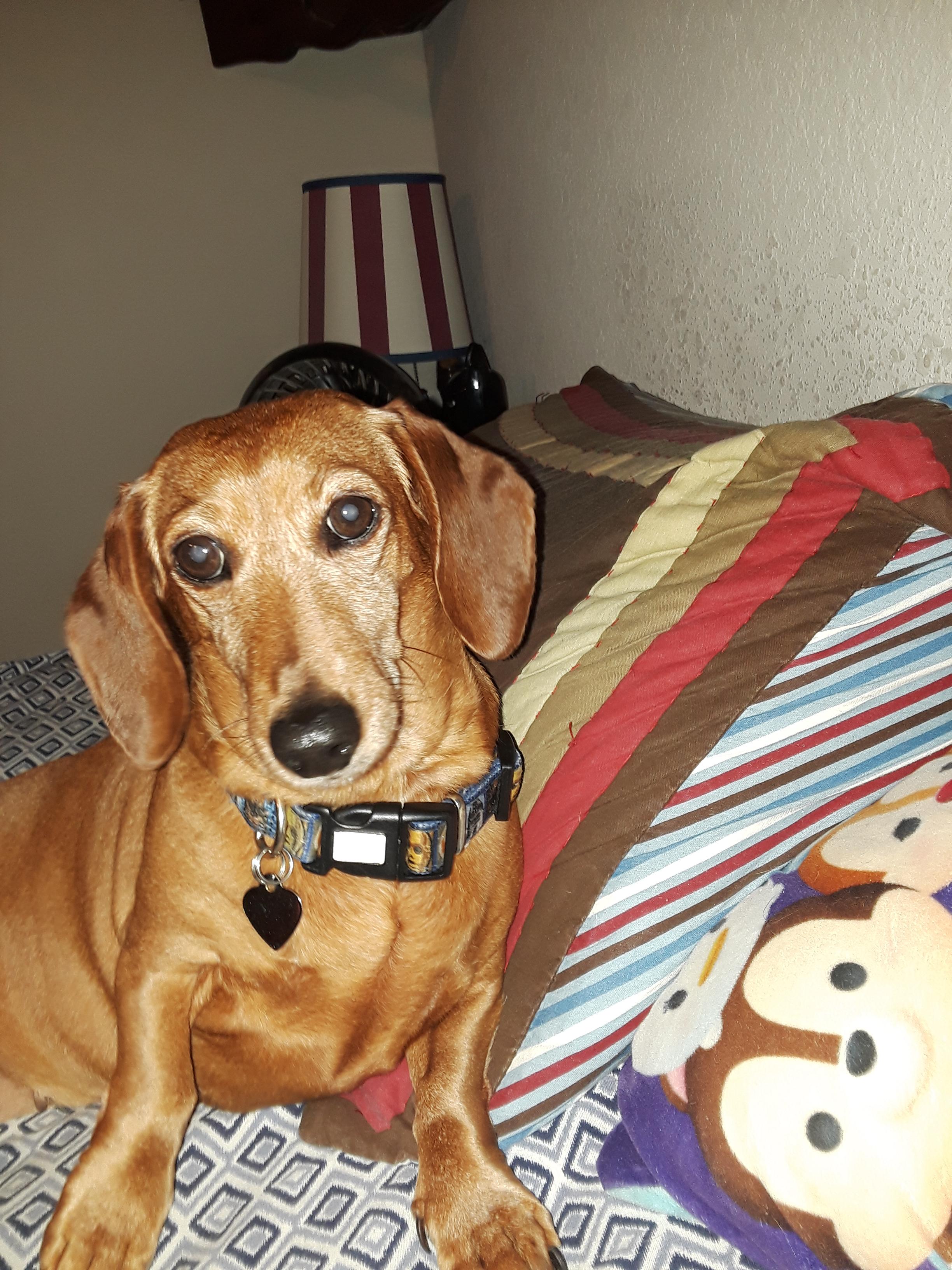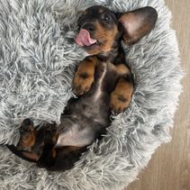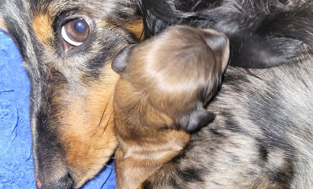 Bitsy is a female Dachshund. Carefully selected as a great representative of her breed, Angela decided to make her part of their program. Angela has passed Good Dog’s screening process, which involved a review of their breeding practices, environment, and the mental and physical health of their dogs.