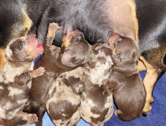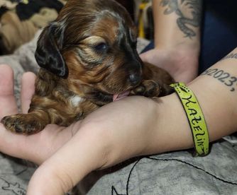 My grandmother bred and showed Yorkies most of my life and I knew at a young age I wanted to be involved with breeding later in life. When time allowed it I decided to go back to my first love dachshunds. We started out with 2 females and 1 male and have grown from there.