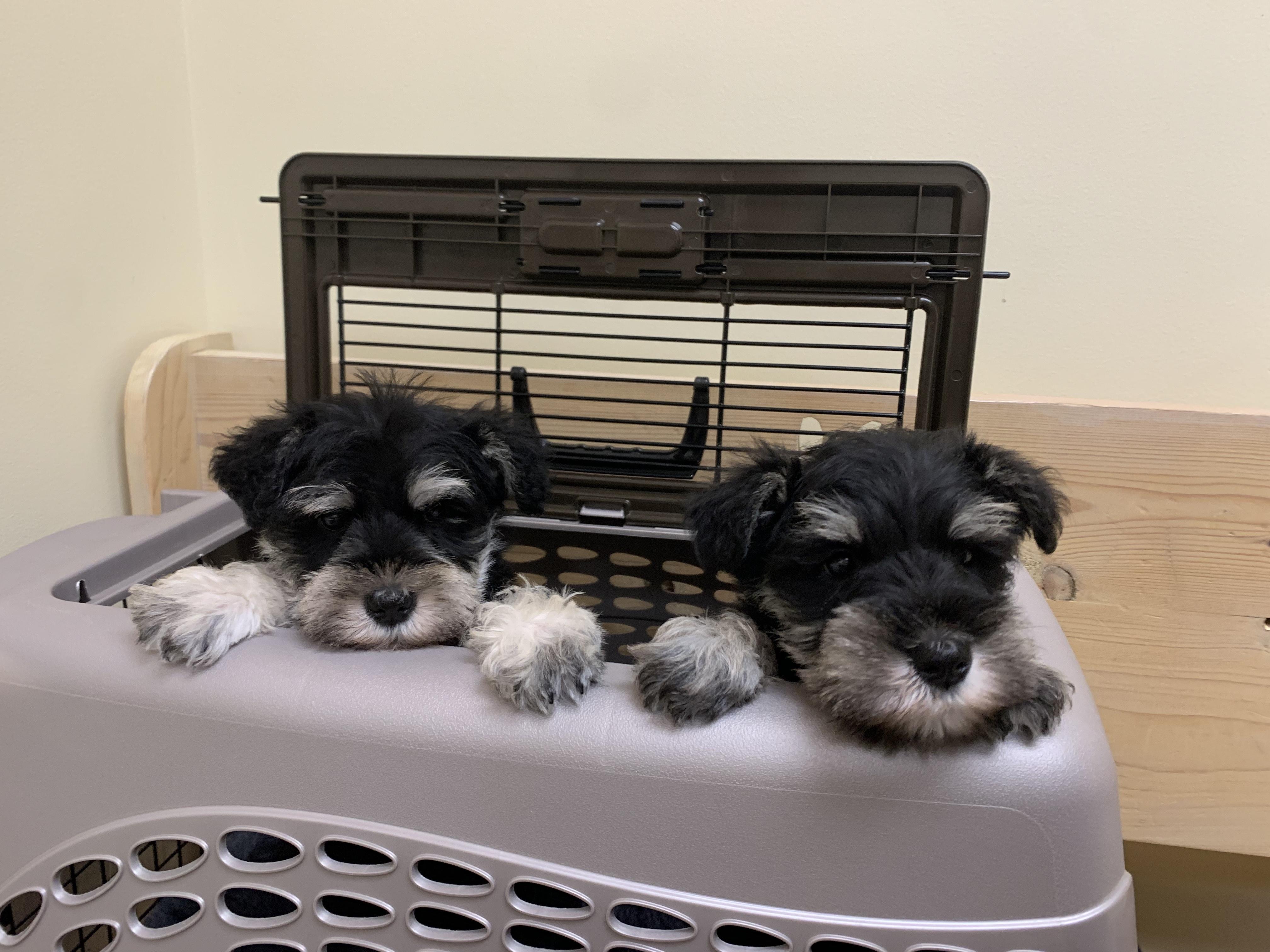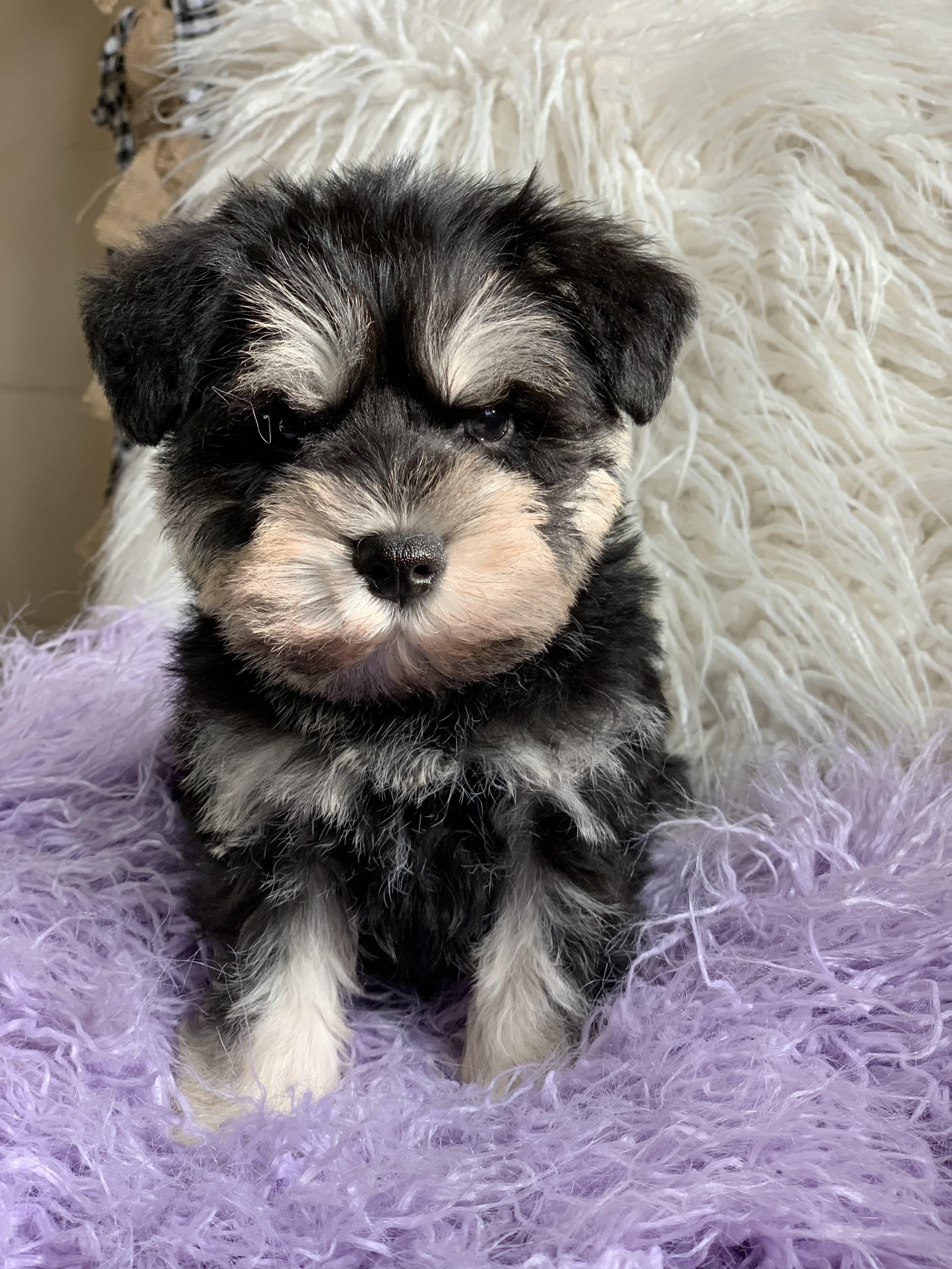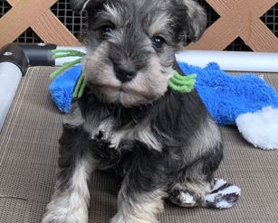Our puppies include salt and pepper and black and silver. Colors will vary depending on the parent dogs.