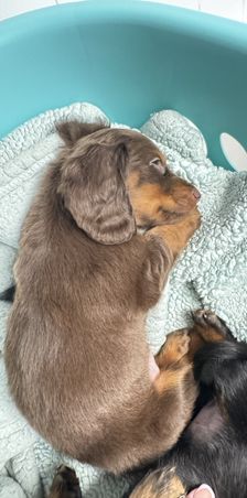 Our puppies include chocolate and tan and black and tan. Colors will vary depending on the parent dogs.