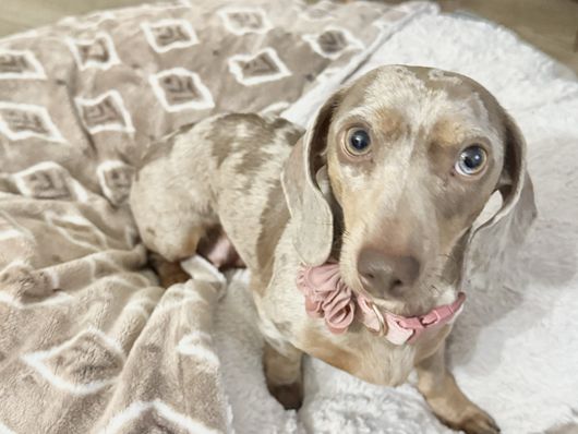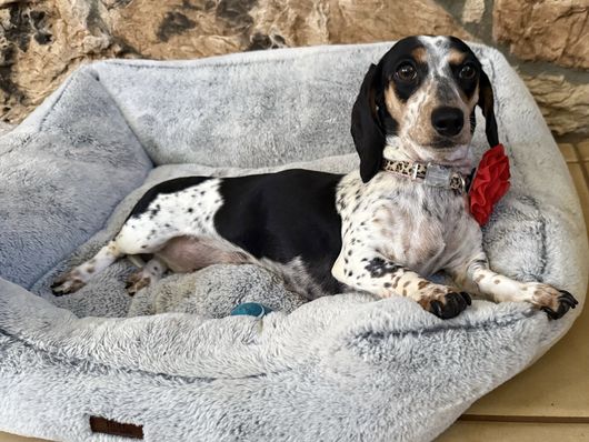 Nala is a female Dachshund. Carefully selected as a great representative of her breed, Annie decided to make her part of their program. Annie has passed Good Dog’s screening process, which involved a review of their breeding practices, environment, and the mental and physical health of their dogs.