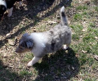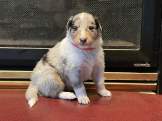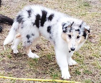Our puppies include white merle, sable merle and white, sable and white, black white and tan, blue merle, and white. Colors will vary depending on the parent dogs.