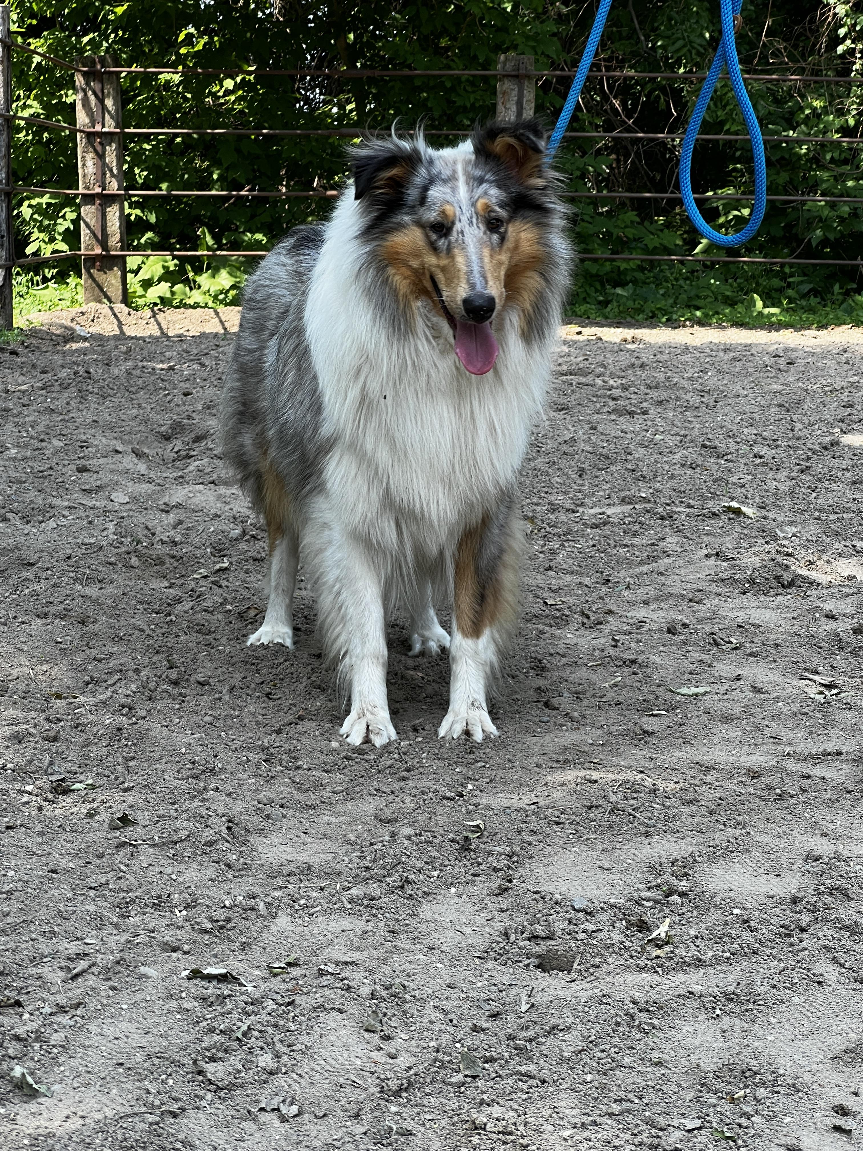 Roberta is extremely responsive and helpful. She was in constant contact with me. She possesses a wealth of knowledge when it comes to rough collies!! Finlay is the best pup ever...loving, kind, friendly and sweet. He was very well socialized. He has a gorgeous coat of fur!