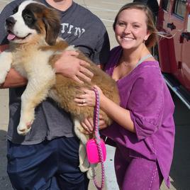 We couldn’t be happier with our Saint Bernard, Bonnie! She’s healthy, well-socialized, and such a joy—proof of the love and care Kathryn puts into her dogs. The whole process was smooth and professional, and we’re so thankful for our beautiful girl.