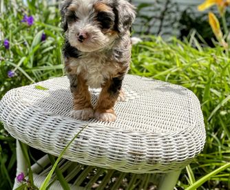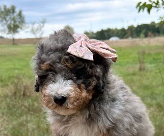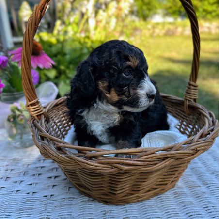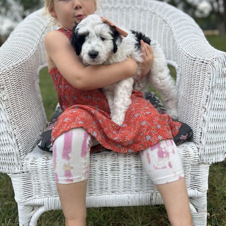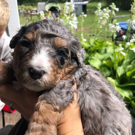 I'm Stacey H., the breeder behind Minnie's UpNorth Doodles located in Mesick, MI. We are a Premium in-home breeder of Mini Bernedoodles on five acres of beautiful northern Michigan countryside. Our puppies come from generations of health tested parents, raised with thorough curriculum exposure, socialization, and handling to produce ideal family companions or therapy dogs.