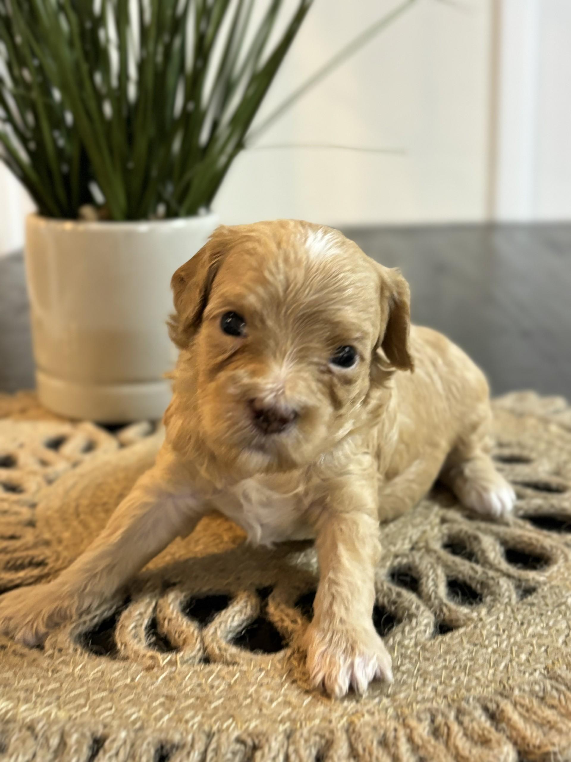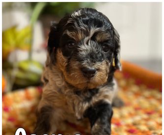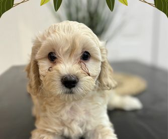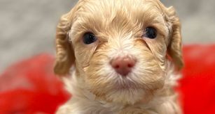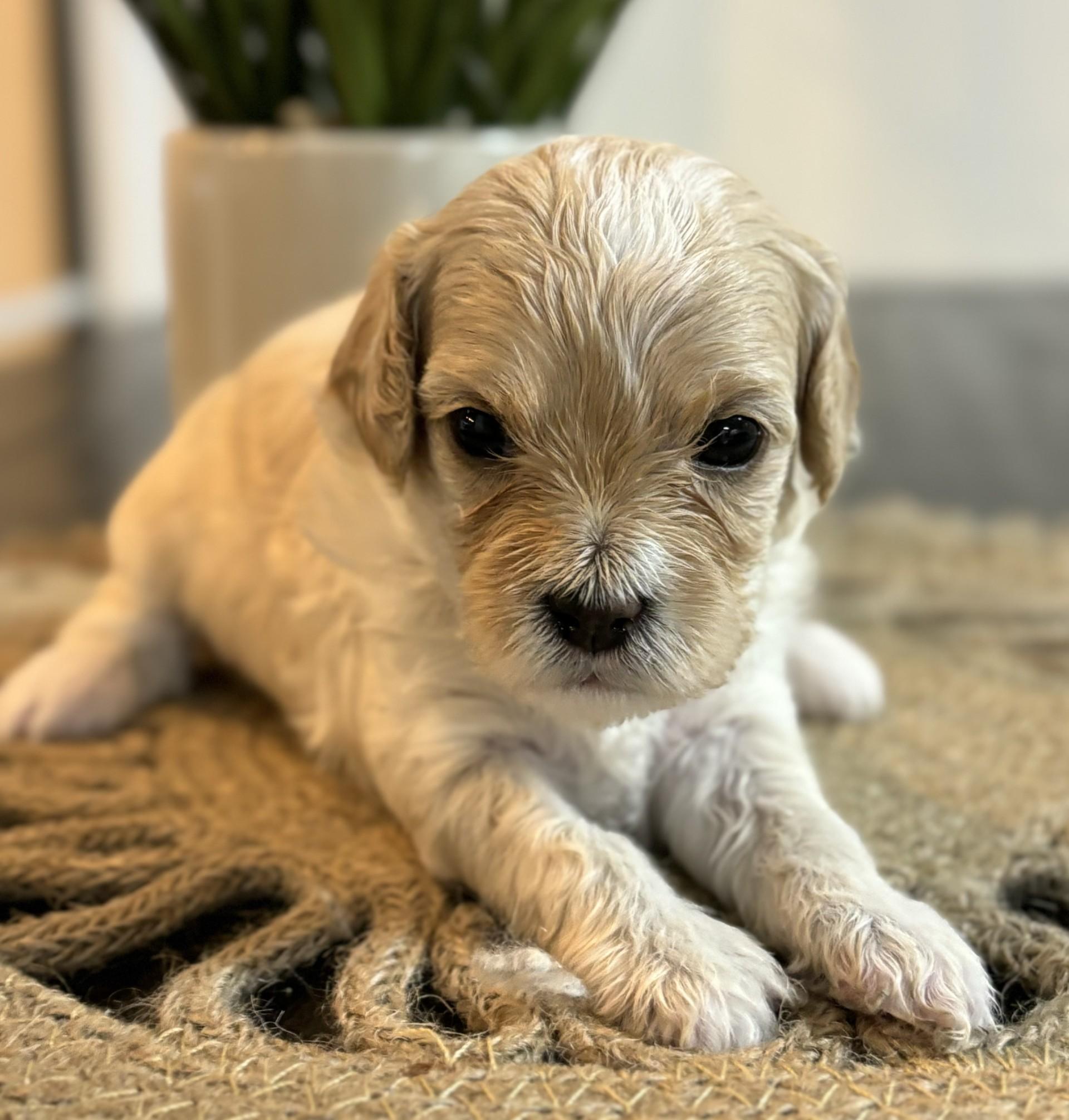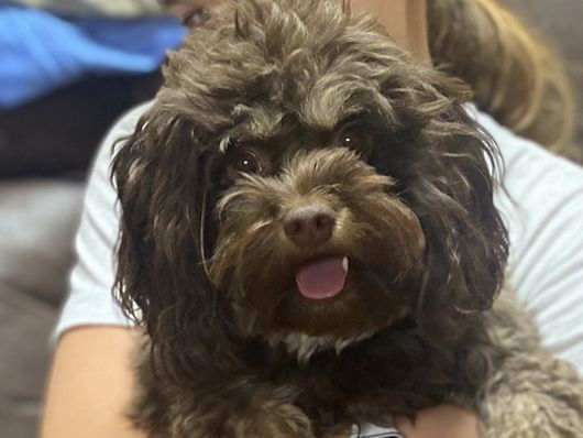 Meet Bella, a beautiful chocolate, phantom Cavapoo. Bella sports a tenacious personality and carries a beautiful brown coat.