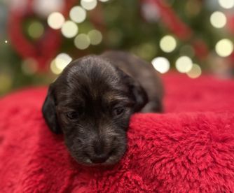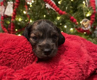 Ginny is a female Dachshund. Carefully selected as a great representative of her breed, Kristy decided to make her part of their program. Kristy has passed Good Dog’s screening process, which involved a review of their breeding practices, environment, and the mental and physical health of their dogs.