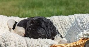 Our puppies include white and black and black. Colors will vary depending on the parent dogs.