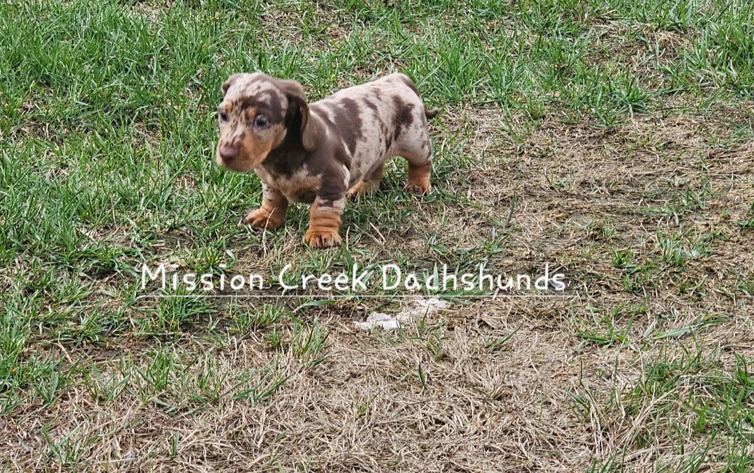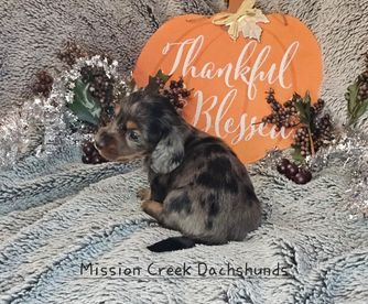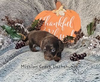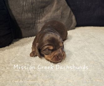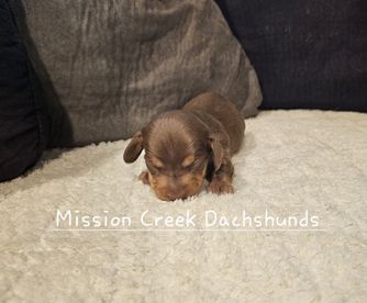 I'm Katelyn J., the breeder behind Mission Creek Dachshunds located in Winchester, ID. I love being a breeder! It's so fulfilling to see the positive effect that a beloved, furry companion can have on its family. I want to make the transition from my loving home to yours as seamless as possible by giving personal attention to each little pup to ensure it is well-rounded and prepared to excel in its forever home.