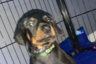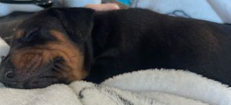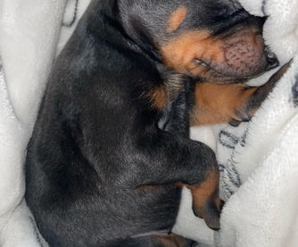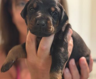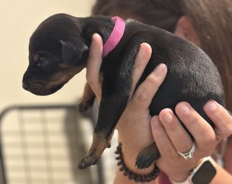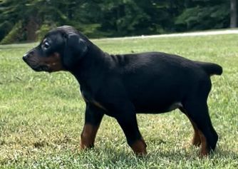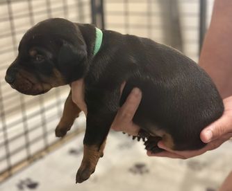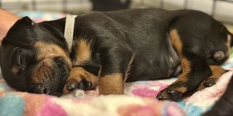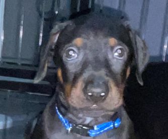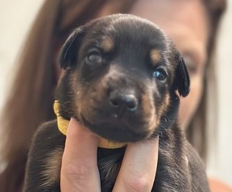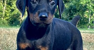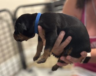 Our puppies are black and rust. Colors will vary depending on the parent dogs.