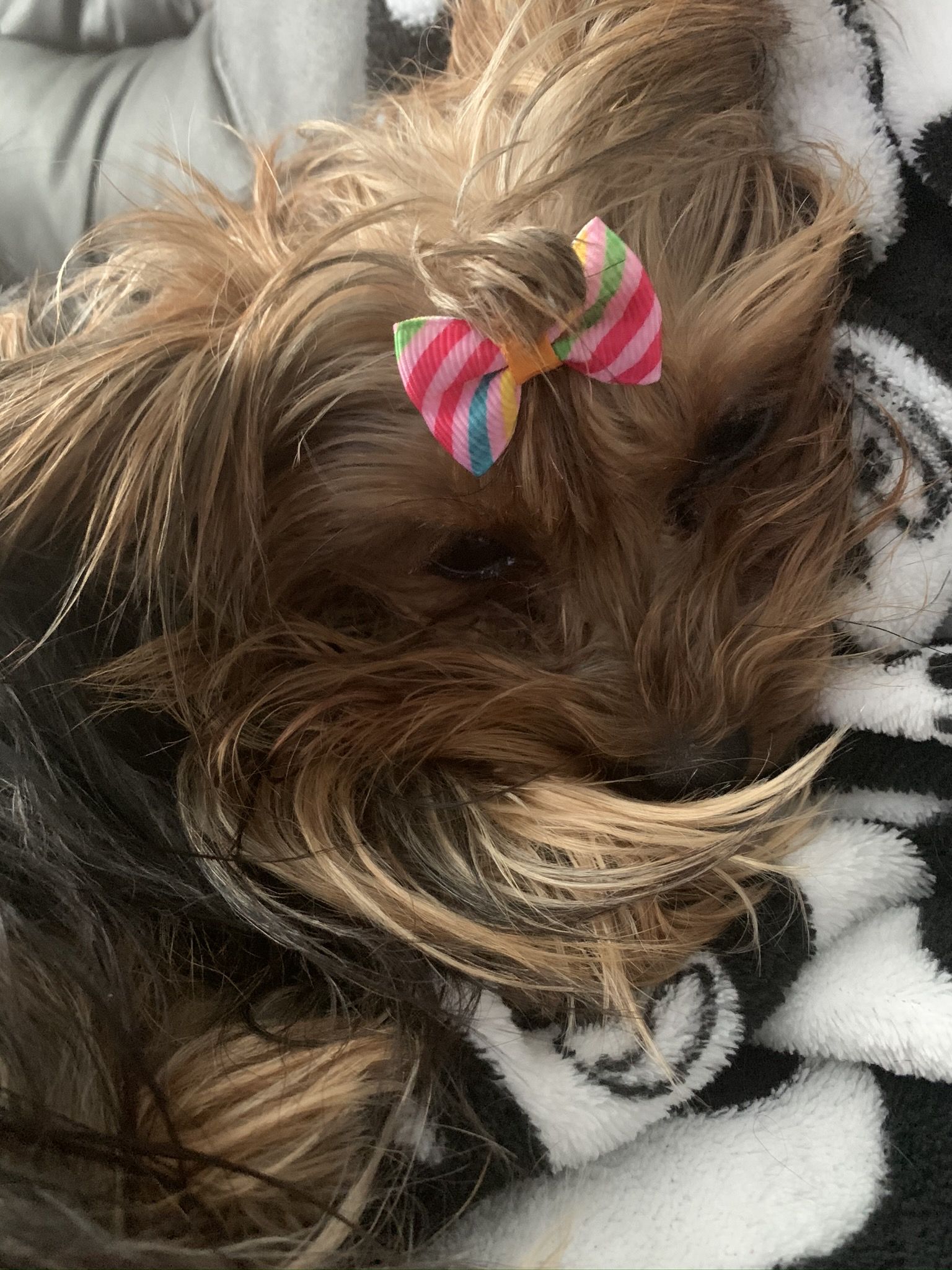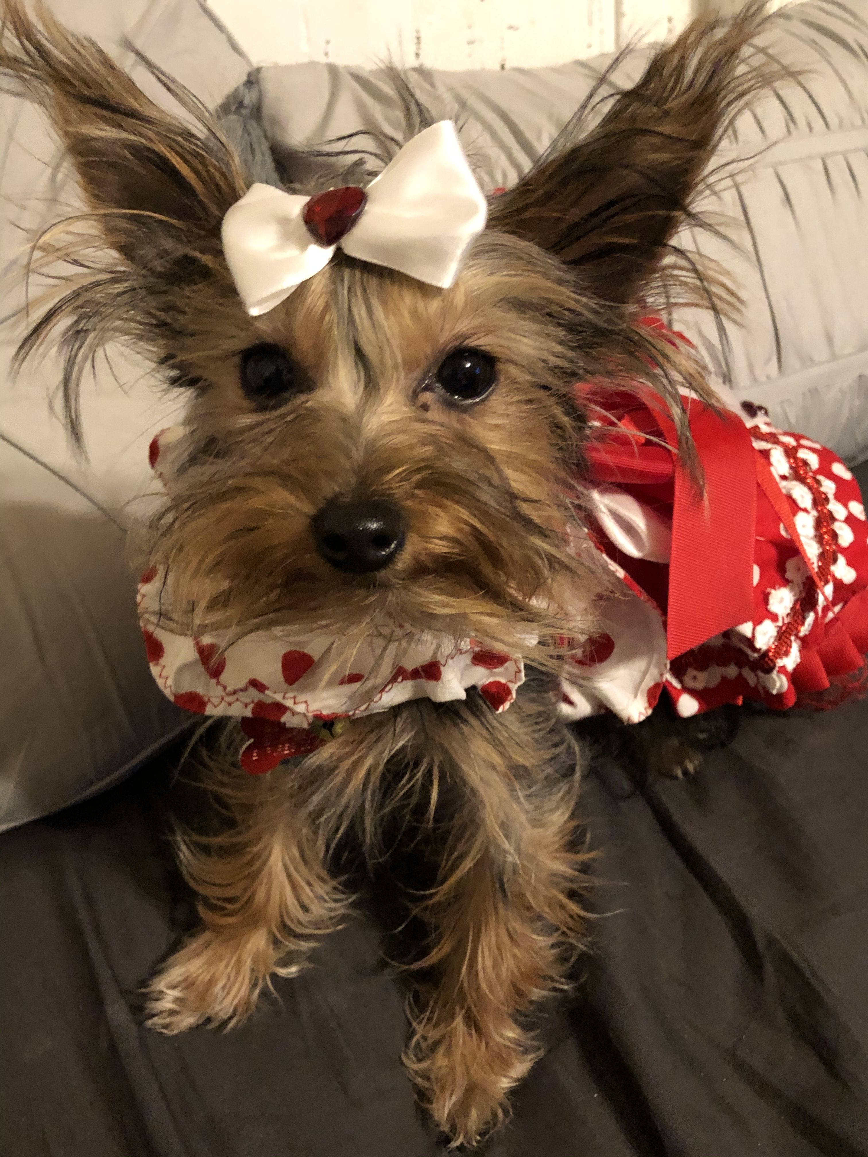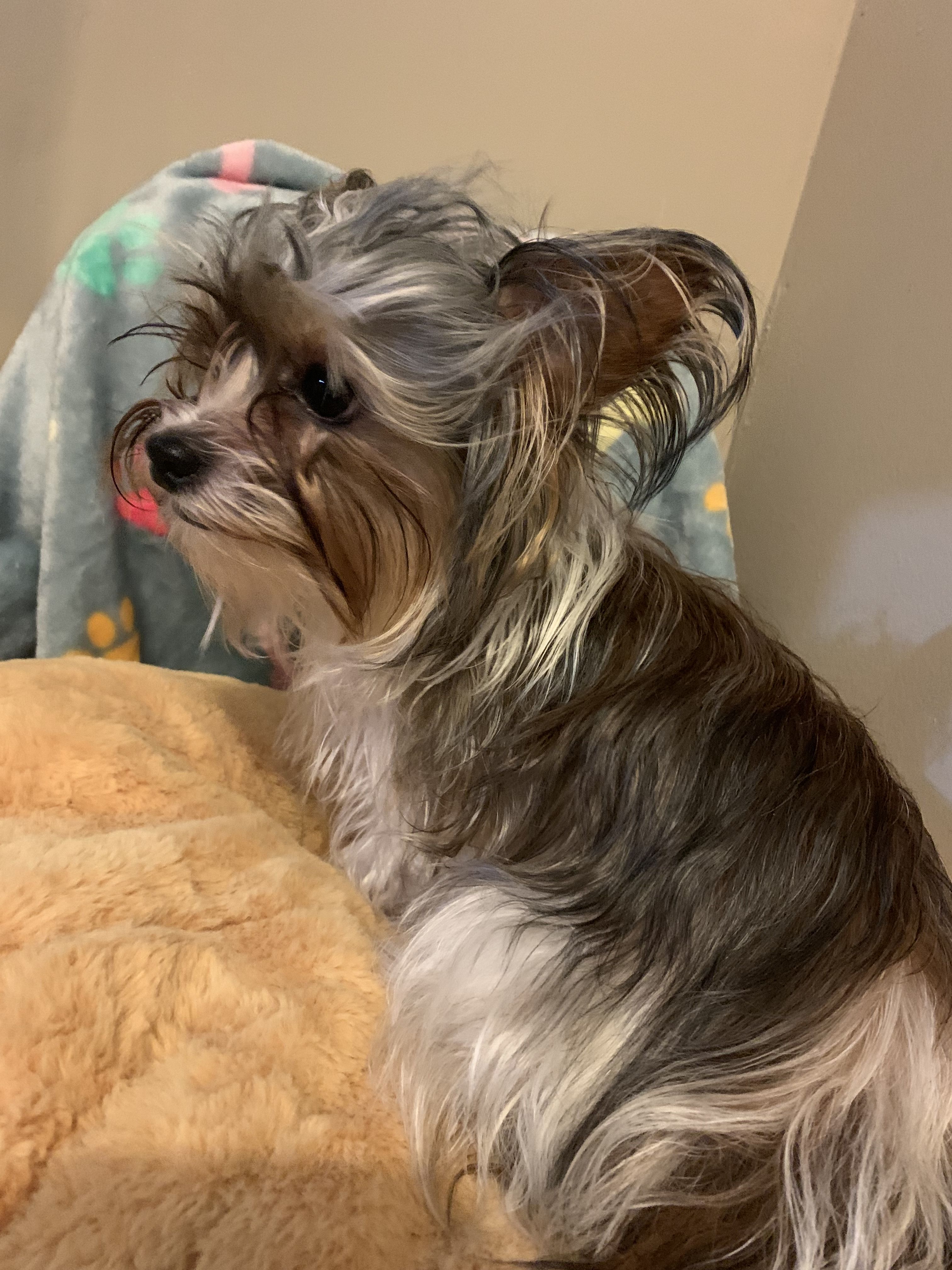 Doodle is a male Yorkshire Terrier. Carefully selected as a great representative of his breed, Melissa decided to make him part of their program. Melissa has passed Good Dog’s screening process, which involved a review of their breeding practices, environment, and the mental and physical health of their dogs.