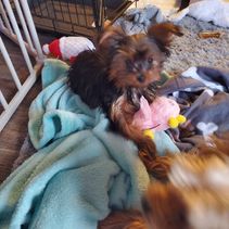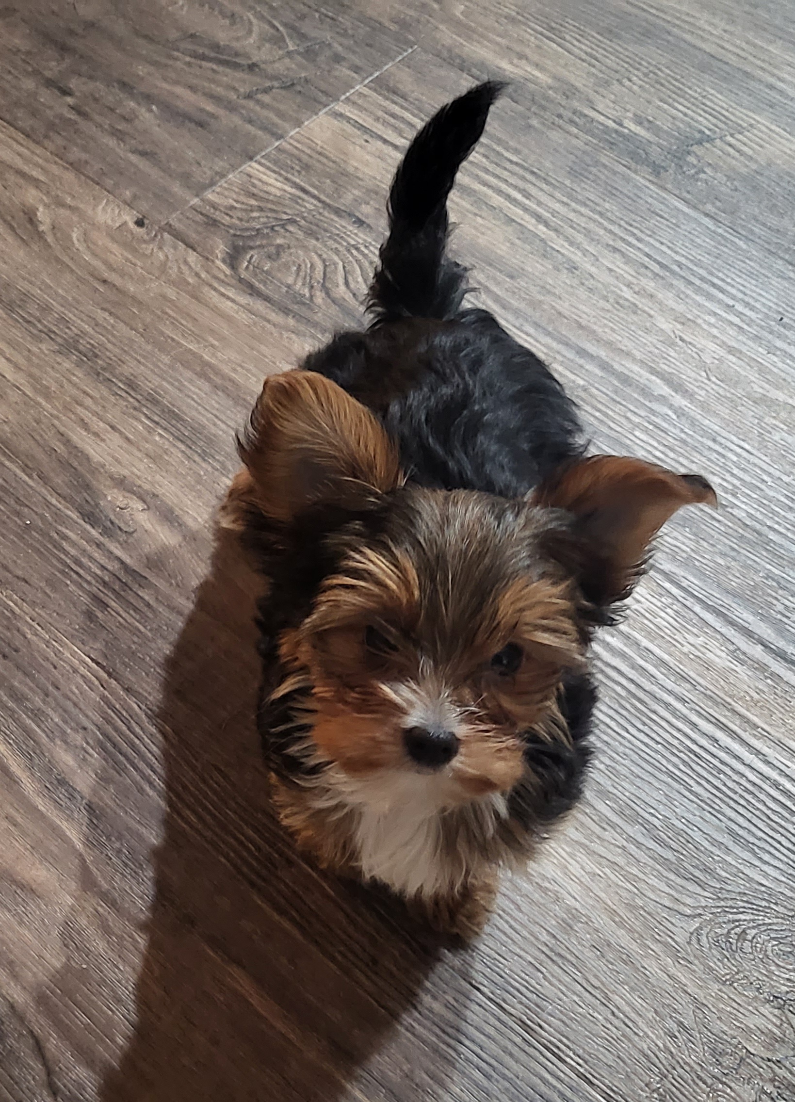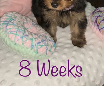 My experience with Melissa was very impressive. She was very timely with her response and was helpful with every step of the transaction. It was evident she takes pride in making sure she has the healthiest litters of Yorkshire Terriers available. We have had our bundle of energy, Margot, for two and a half weeks and couldn't be happier with our newest family member! Margot had her first checkup and 2nd in the series of DHPP vaccinations this week, and her examination results were extremely positive.