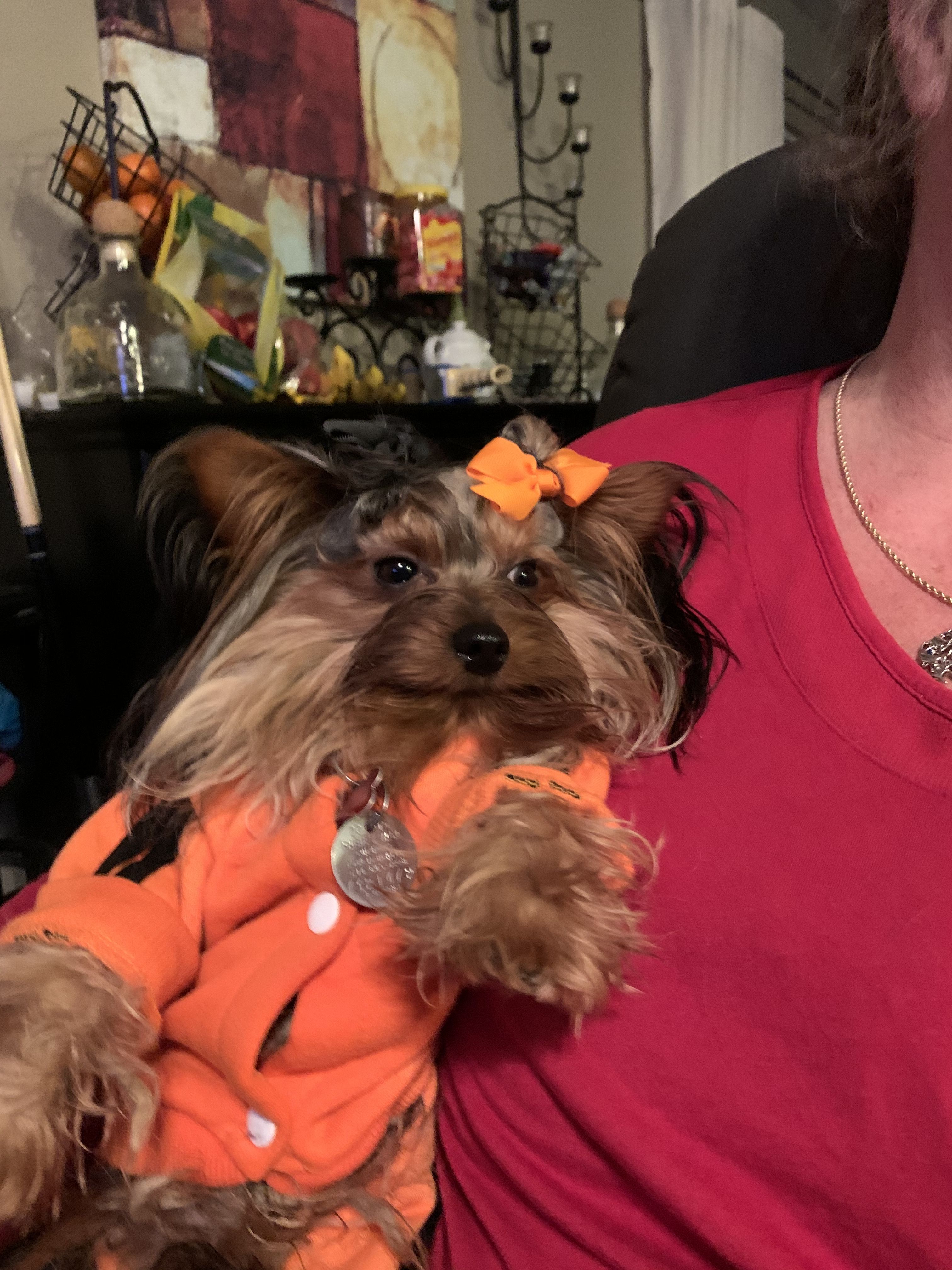 Shug is a female Yorkshire Terrier. Carefully selected as a great representative of her breed, Melissa decided to make her part of their program. Melissa has passed Good Dog’s screening process, which involved a review of their breeding practices, environment, and the mental and physical health of their dogs.