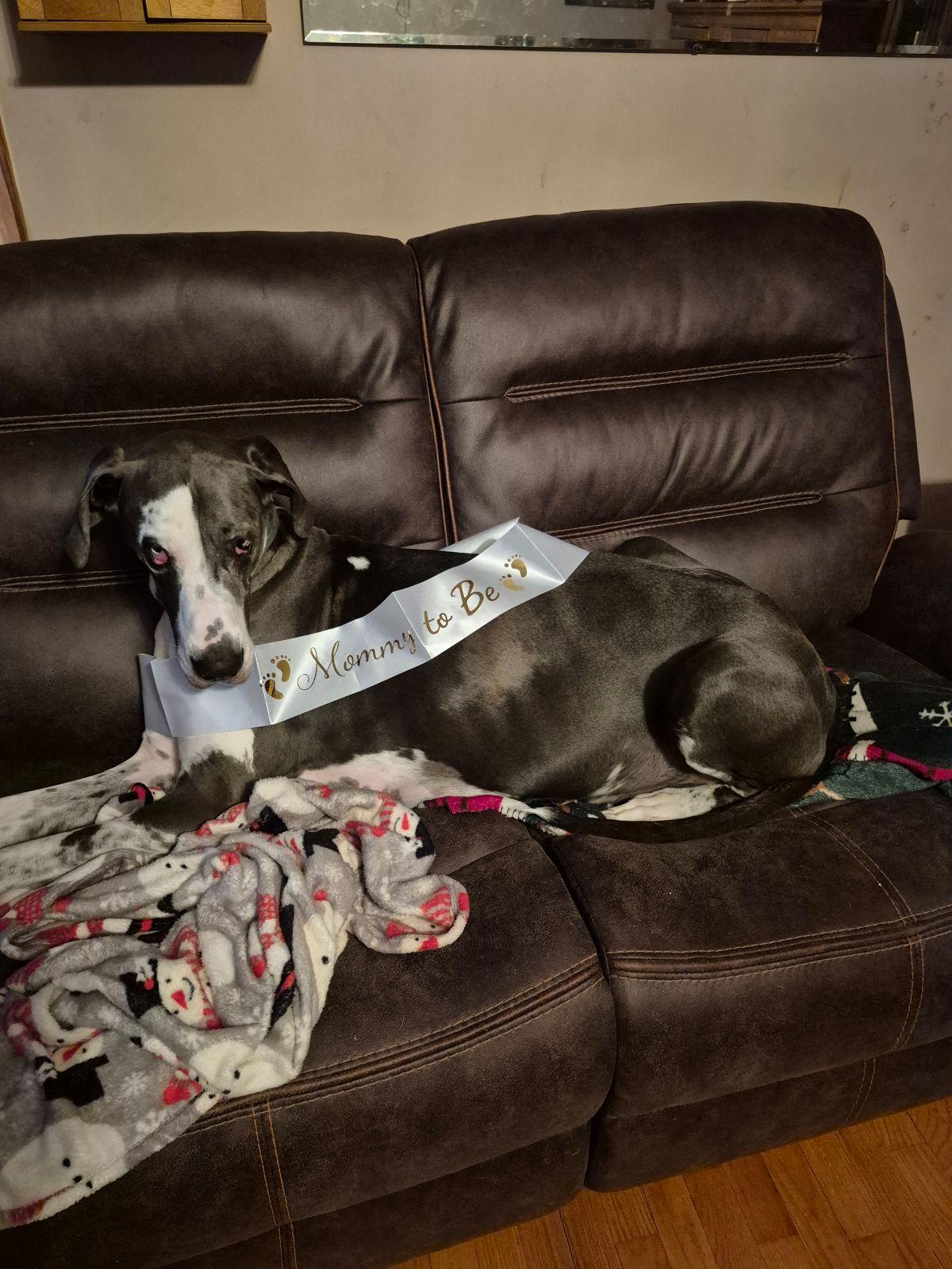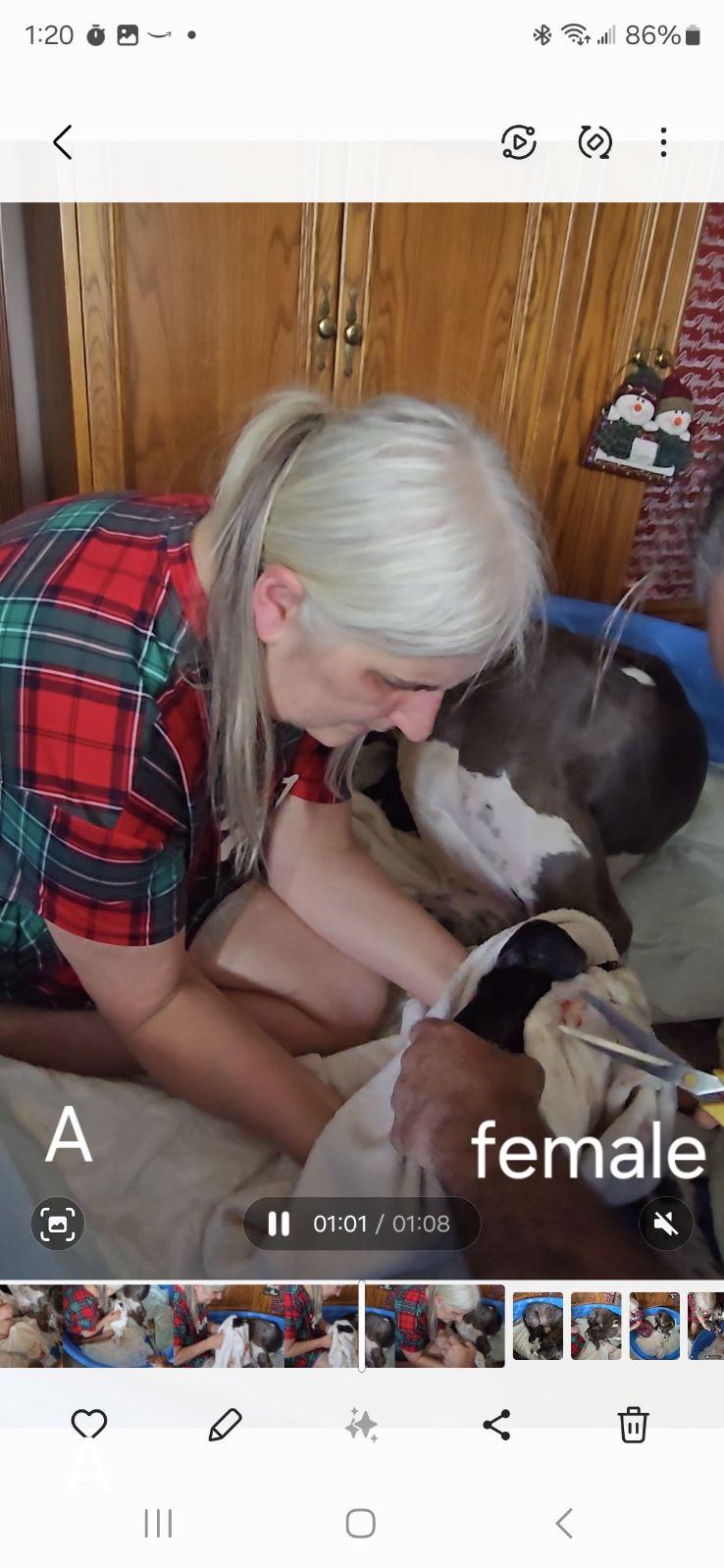 Our puppies include brindle, harlequin, and black. Colors will vary depending on the parent dogs.
