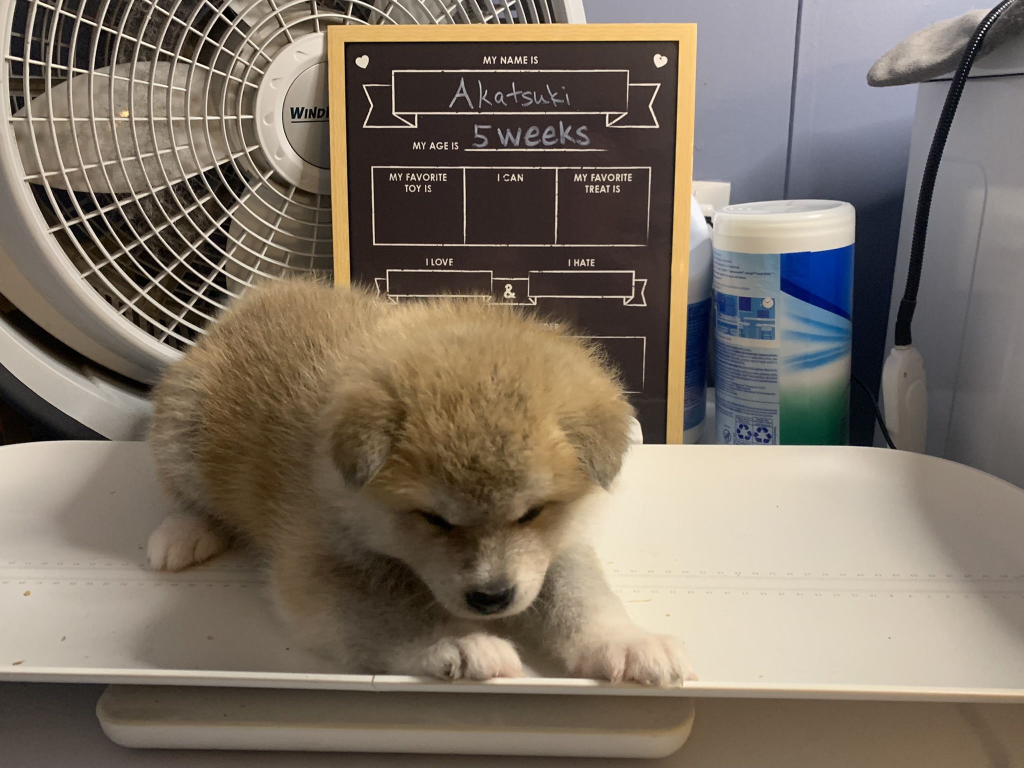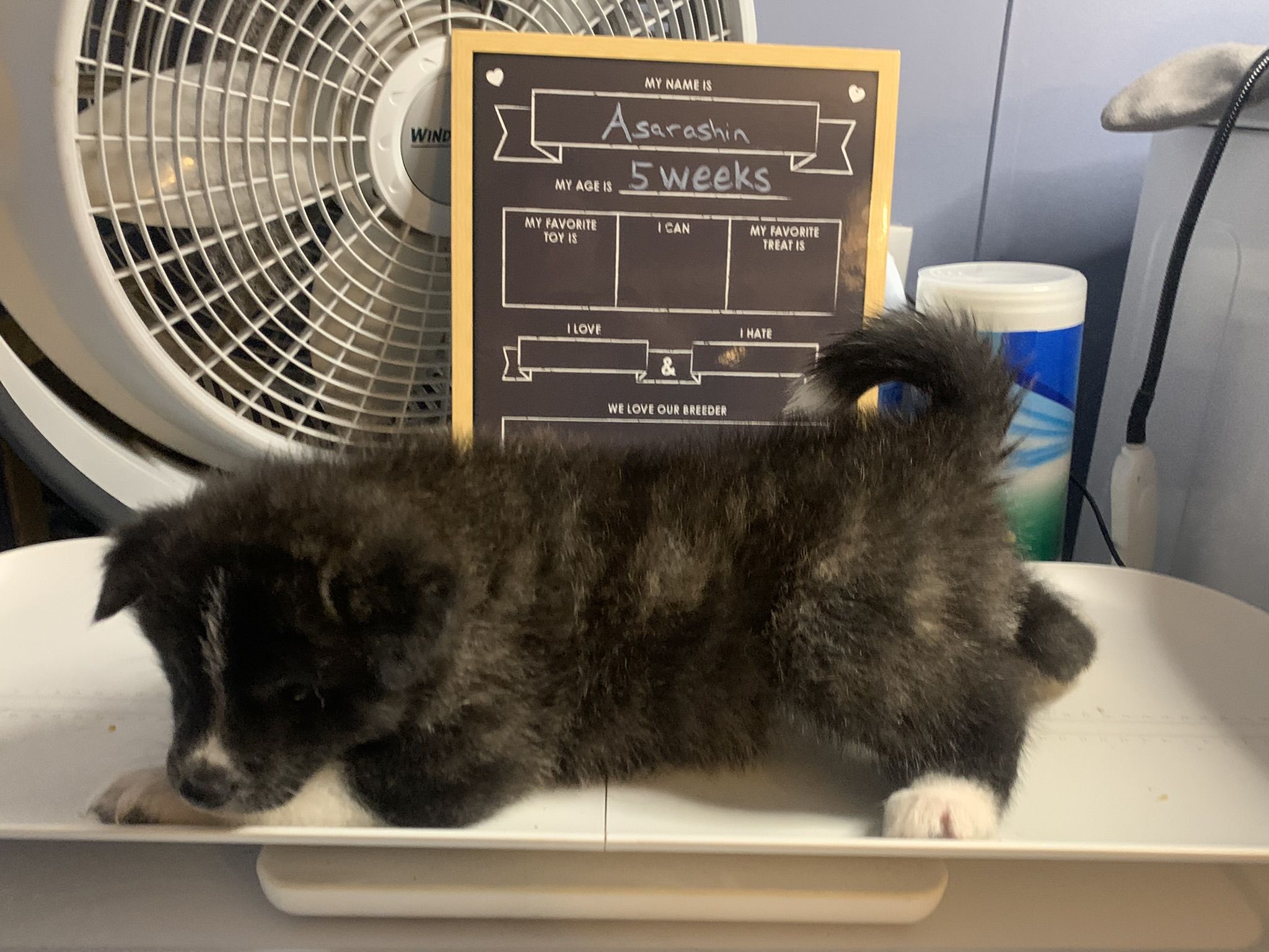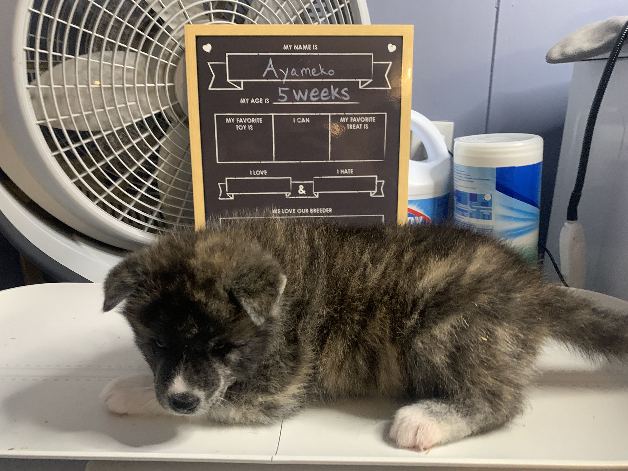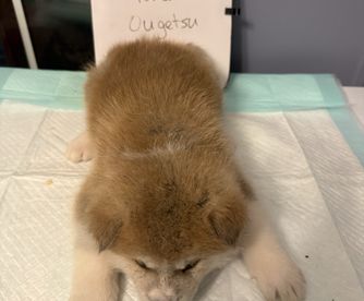 Katsu (formerly known as Mitsushiro) has brought so much joy to our lives. After losing our GS in December 2024, it was a very thoughtful decision to have another pup. With that said, we wanted to go with a reputable breeder, and we are so thankful to come across Erin and her Akitas. Katsu is very well tempered with bouts of energy that makes him so fun loving. He took to his crate immediately and potty training has been pretty much a breeze. We’re using a bell on the door and just in 2 weeks, he’s been using it to signal he wants to go outside. We’ve only had 3 accidents in the house. I credit his temperament and personality to Erin and her carefully selected pack. We are still in awe. He can sit, lay down, walks on a leash, comes, and can heel. Very receptive to training (we use kibble mostly). We definitely see the stubborn side everyone mentions when it comes to Akita’s. Just have to be consistent and patient. Erin was amazing at answering all of my questions. She would go into detail when needed and it was really helpful. All in all, a wonderful experience and breeder. One of the rare ones that has full checkups done -and- posted and with AKC registration (pending but coming!). Had I gone for distance, I could’ve gone with someone in CA but Erin’s pups are worth the flight.