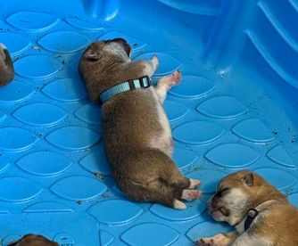 Our puppies include white, red, and brindle. Colors will vary depending on the parent dogs.
