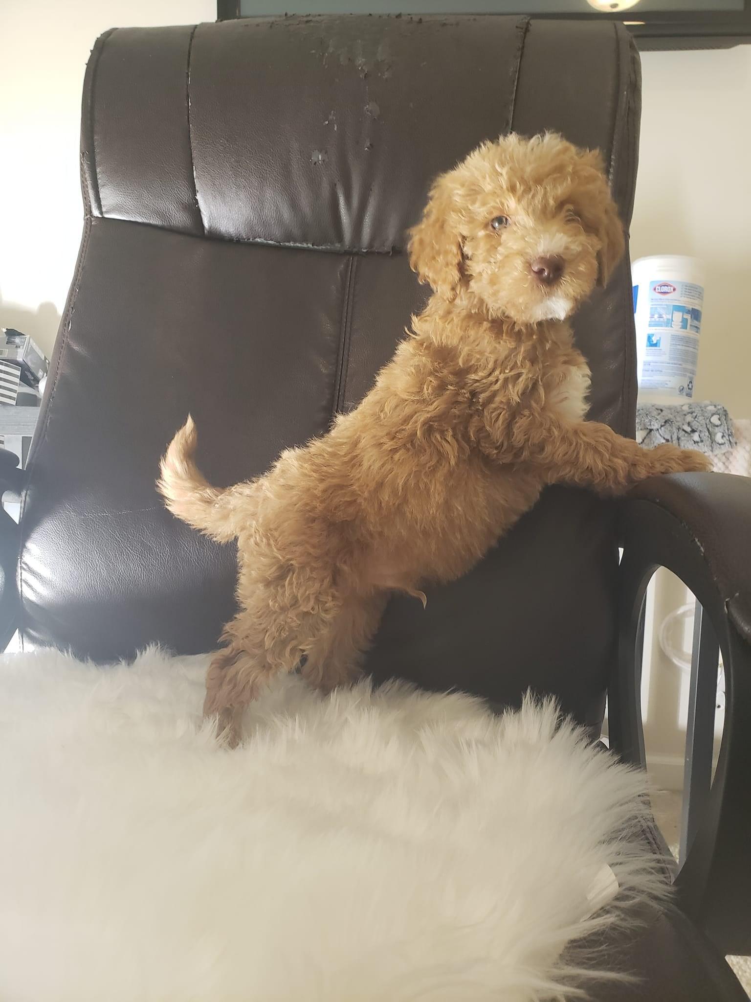 I got my first poodle in 2010. She was a chocolate brown poodle. Demised due to health reasons, I was heartbroken. I later decided to get another fur-baby family member and after doing some research, I fell in love with goldendoodles which is a mix of the poodle and golden retriever; two of the most smartest, intelligent, obedient, loyal, fun loving, and easy temperament breeds. I fell in love with and got my fur-baby Nola, a miniature apricot goldendoodle in December of 2019. I love how unique the doodles, their temperament, and how easy they are to train. My love for goldendoodles has grown into a passion to produce healthy, quality, well-rounded fur-baby goldendoodles for the next family,