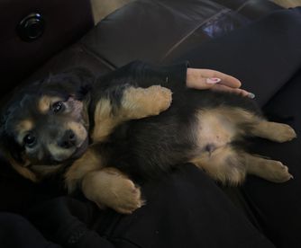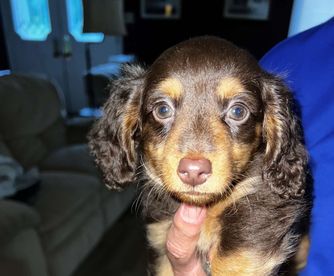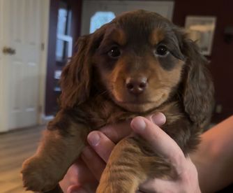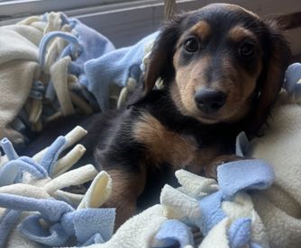 Dachshund puppies have longhaired coats. Coat types may vary depending on the parent dogs.