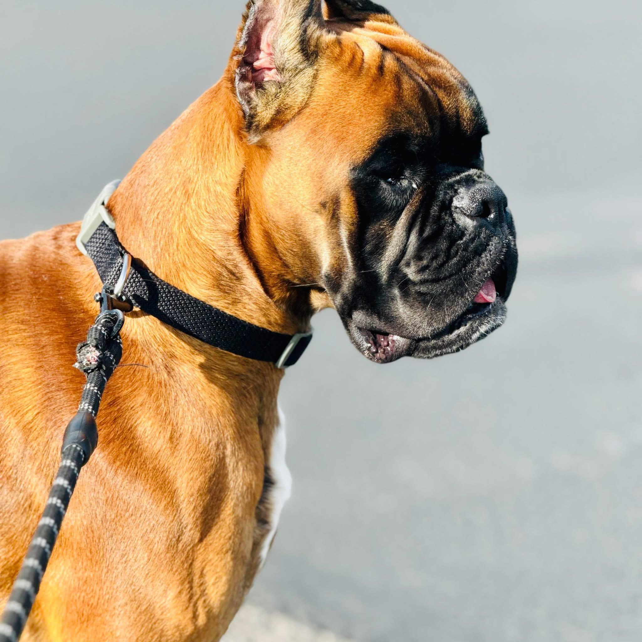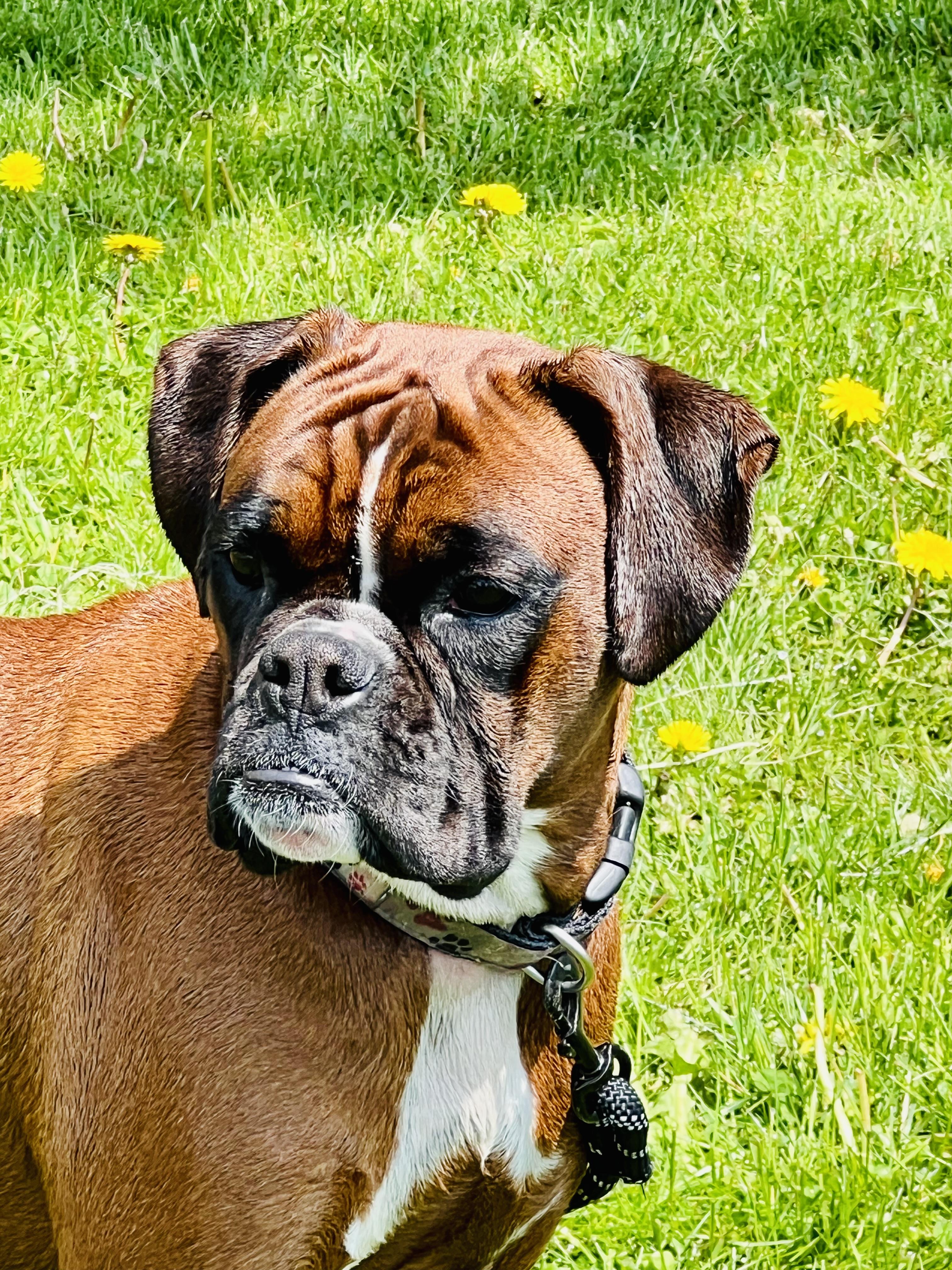 Gemma is a female Boxer. Carefully selected as a great representative of her breed, Michael decided to make her part of their program. Michael has passed Good Dog’s screening process, which involved a review of their breeding practices, environment, and the mental and physical health of their dogs.