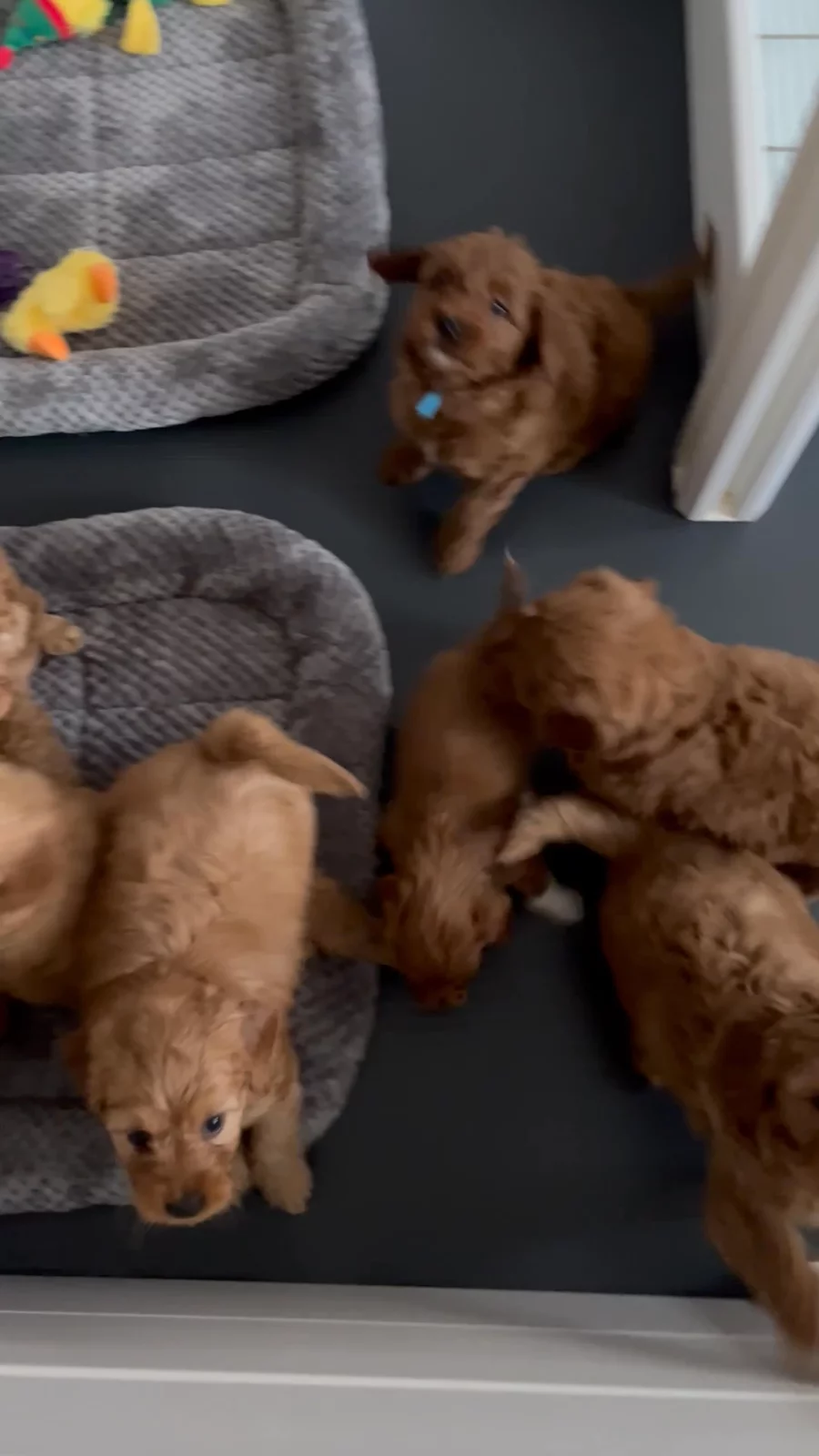 Our puppies include cream, apricot, red, and parti. Colors will vary depending on the parent dogs.
