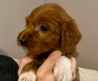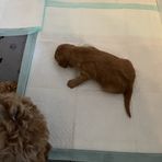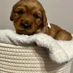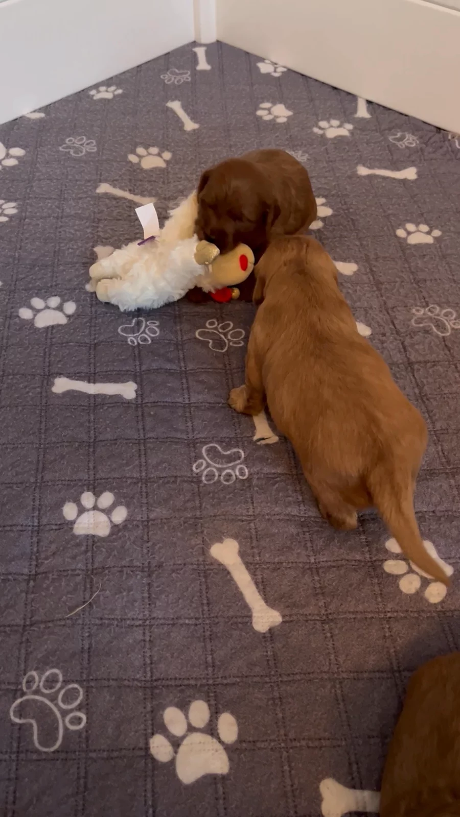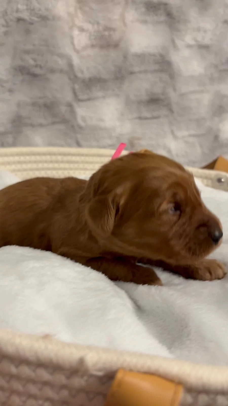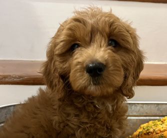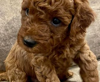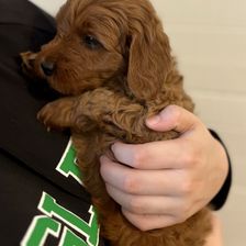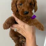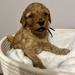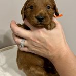 Meet Sneezy! Sneezy is our orange colored boy. He is a deep red and has a beautiful wavy coat that continues to get fluffier as he gets older. He is the most mellow from our litter and is an absolute cuddle bug! He has a wonderful temperament and is already very loving. He’s amazing with kids and adults so he would fit well in a family or in an adult only home.