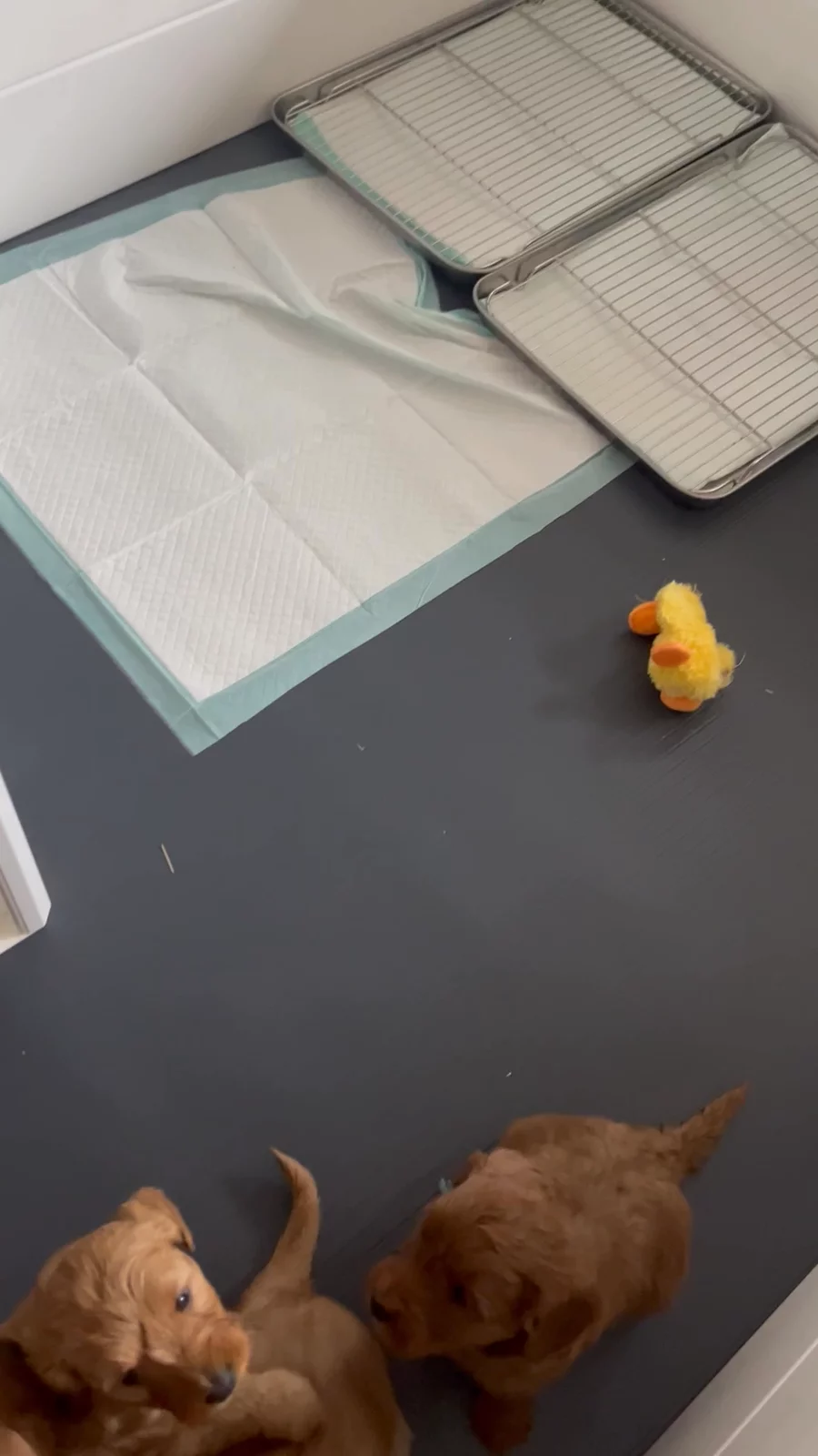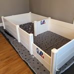 Last night we extended the welping box for our Snow White litter. They are loving the extra room and really enjoy exploring it! We added some toys to one side and some puppy pads to the other side so they could begin their training. They are doing such a great job and have used the puppy pads several times. They are so smart!!