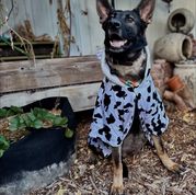 Calista is ready for Halloween!! She will be having her puppies soon! Let’s hope for Halloween babies! 🎃💀👻