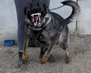 Cali is the granddaughter of the famous and late Extreme Orex Aykmar. Cali is an imposing female, with a true heart for work. She has high prey drive, very firm and fast grips, and is a versatile female. She can switch from civil to sport with ease. She has high toy drive and absolutely loves to use her nose. She will work whenever and wherever. She works well with other handlers and shows no aggression towards other dogs and animals. She learns quickly and is eager to please her handler. She is very quick and keeps a nice working weight of 74 pounds. She is a larger working female. Her conformation is proper and she is a stock coat sable female. She is currently training in IGP and PSA. She will be getting her BH, once this litter is done. She has used a bite suit and for her first time showed no fear on the bite suit or sleeve. Cali is a force to be reckoned with. She will make a great female for mkk9shepherds breeding program and we are excited for her first litter!!!
